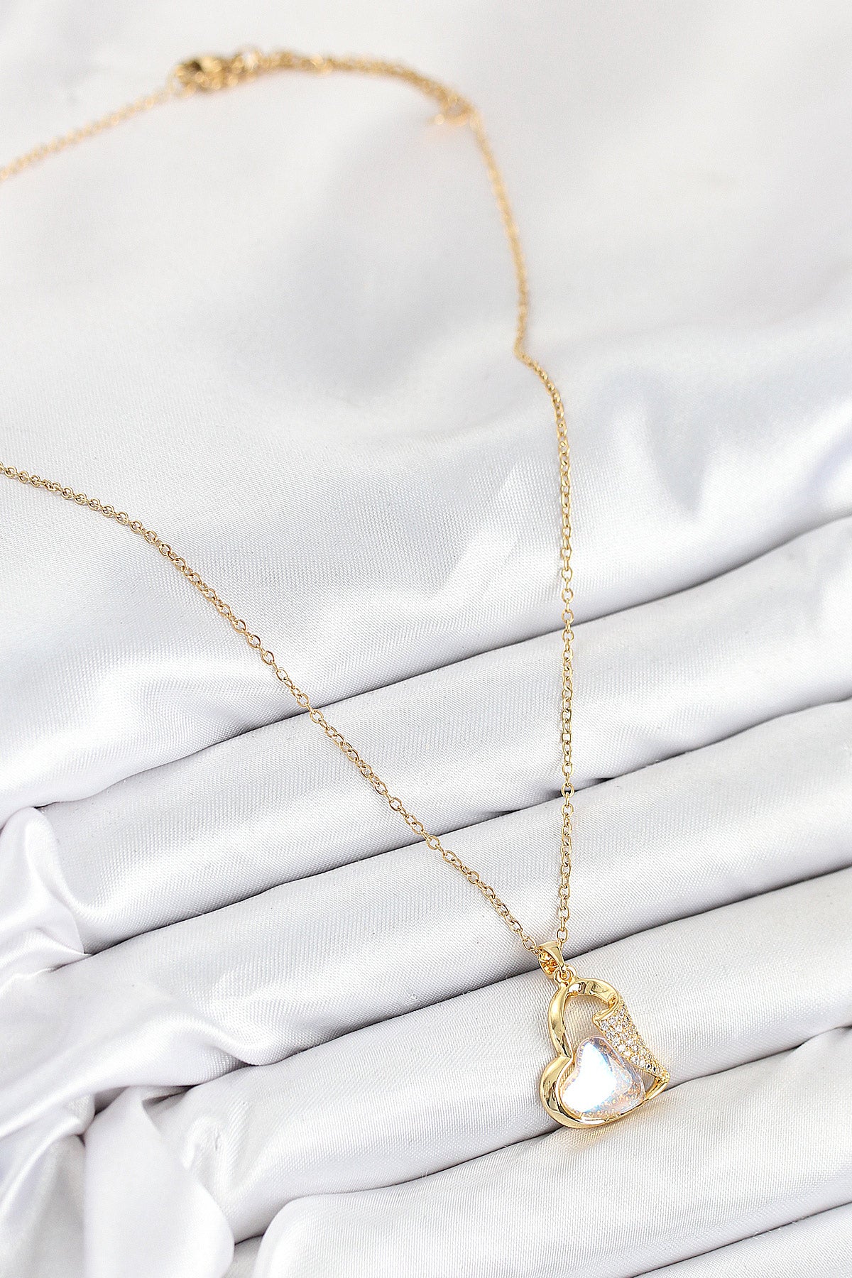 BKO10523 - 316L Çelik Zirkon Taşlı Kalp Model Gold Renk Kadın Kolye