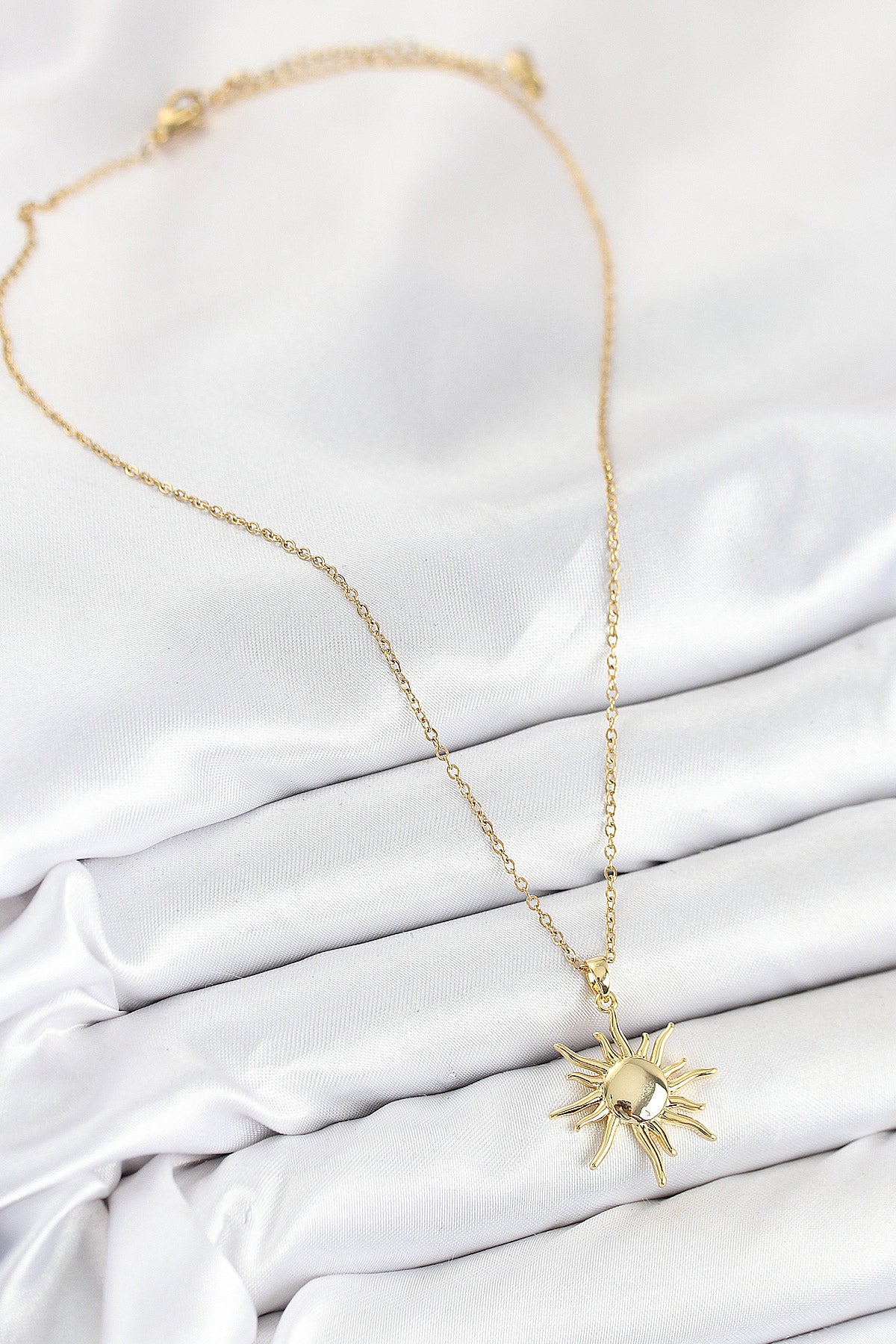 316L Çelik Güneş Model Gold Renk Kadın Kolye |