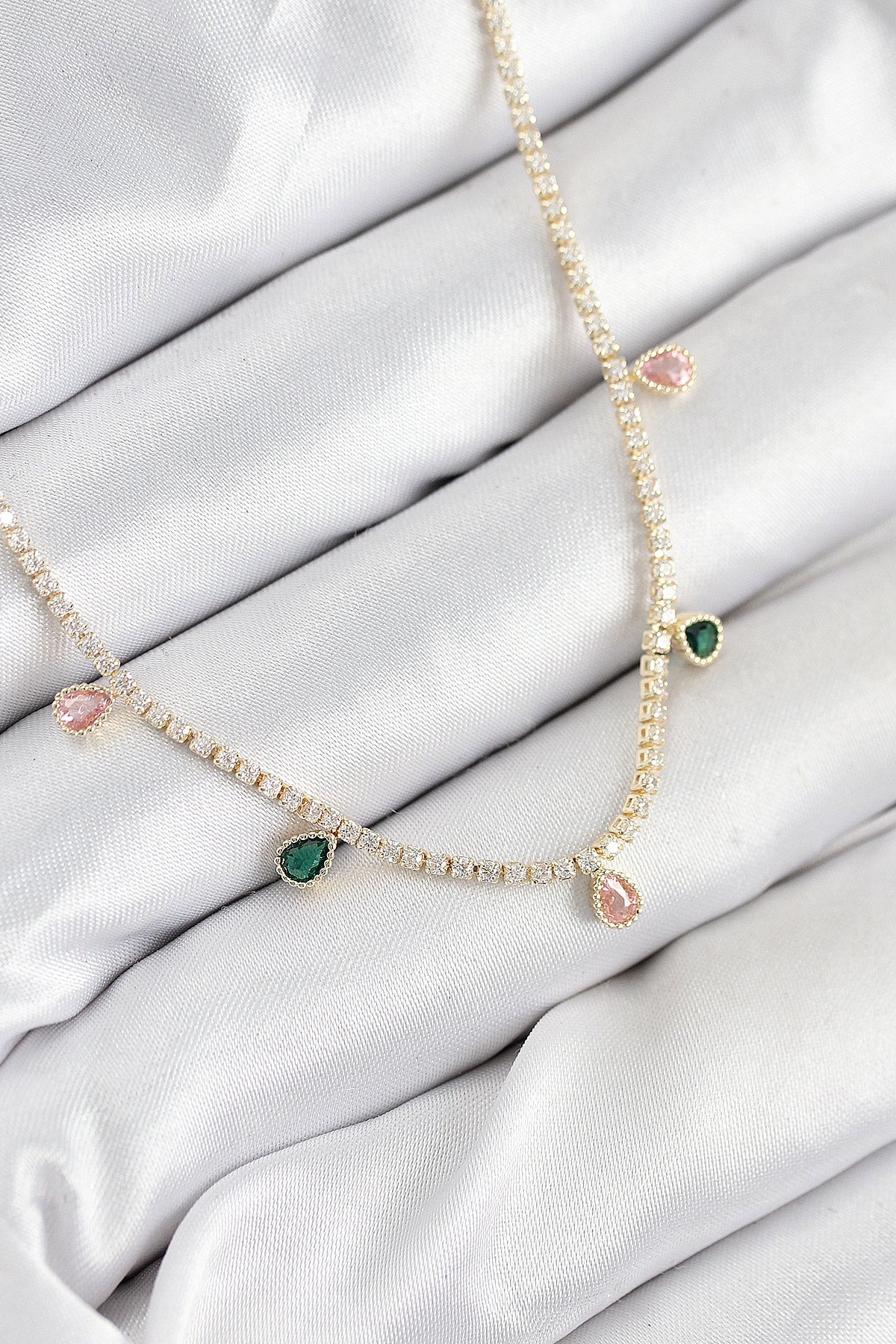 Ürün Adı: | Pirinç Zirkon Taşlı Su Yolu Damla Model Gold Renk Kadın Kolye |