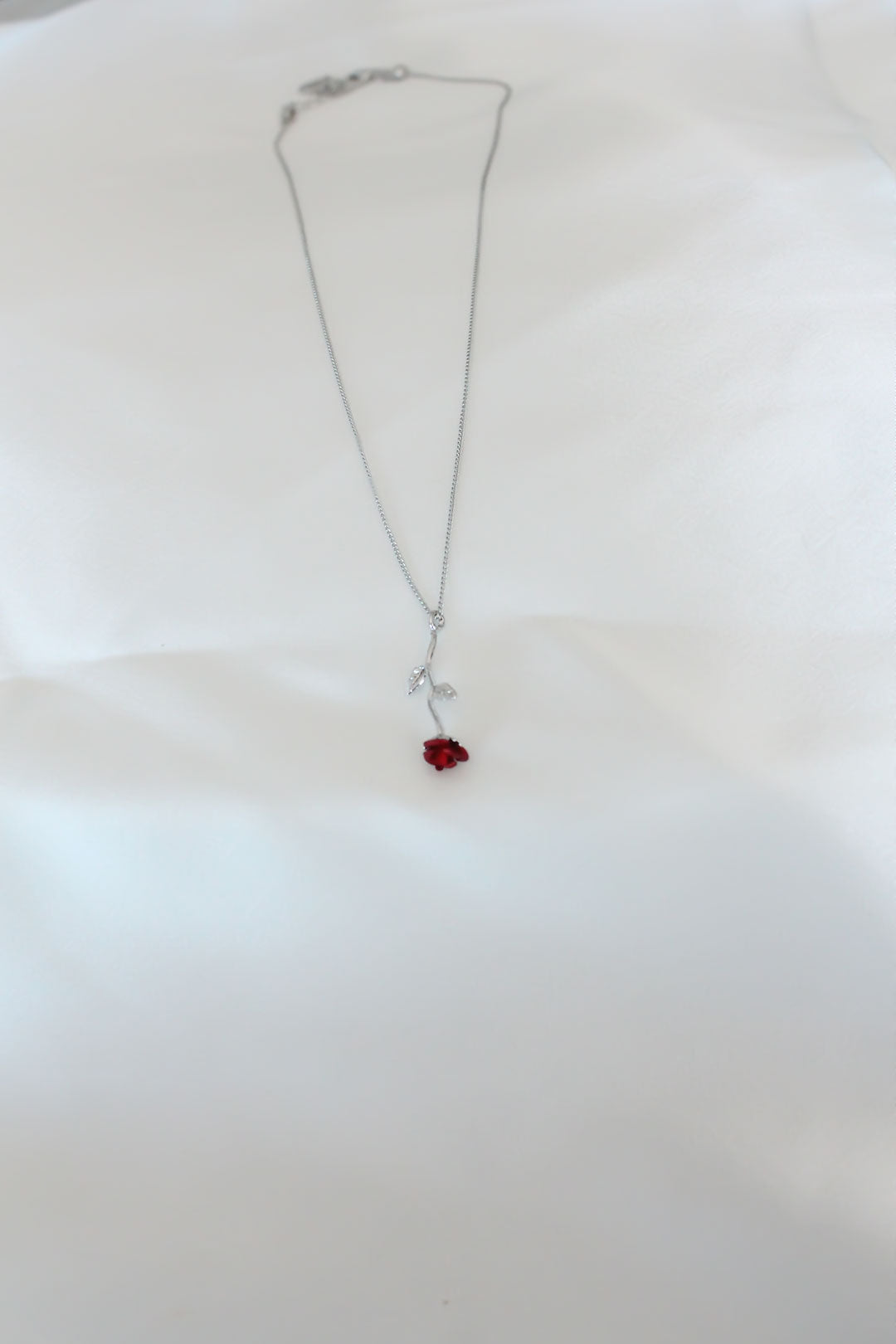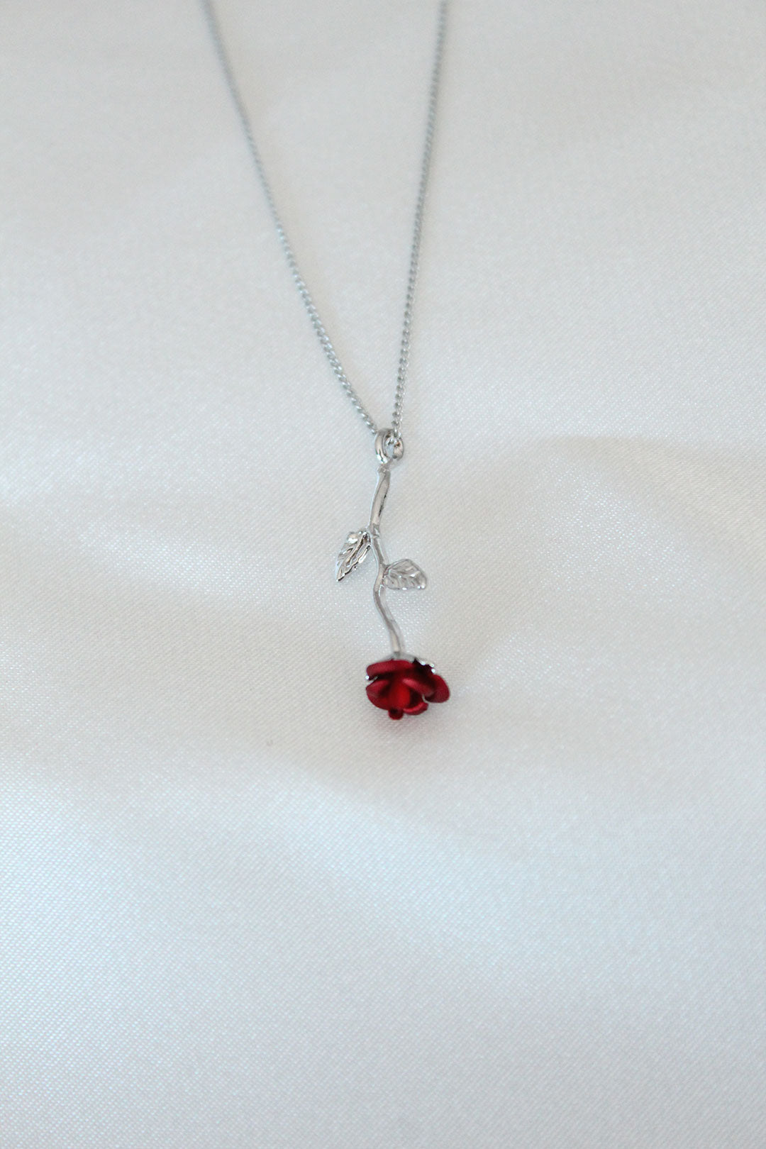 BKO6441 - Gümüş Kaplama Kırmızı Gül Figürlü Kadın Kolye