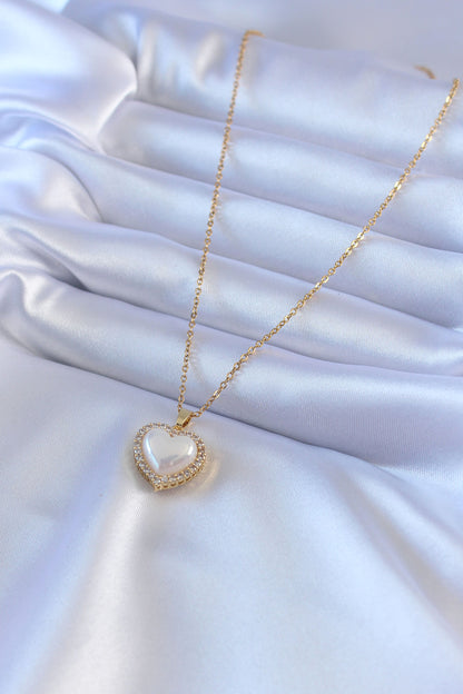 - Ürün Adı: 316L Çelik Gold Renk İncili Kalp Model Zirkon Taşlı Kadın Kolye