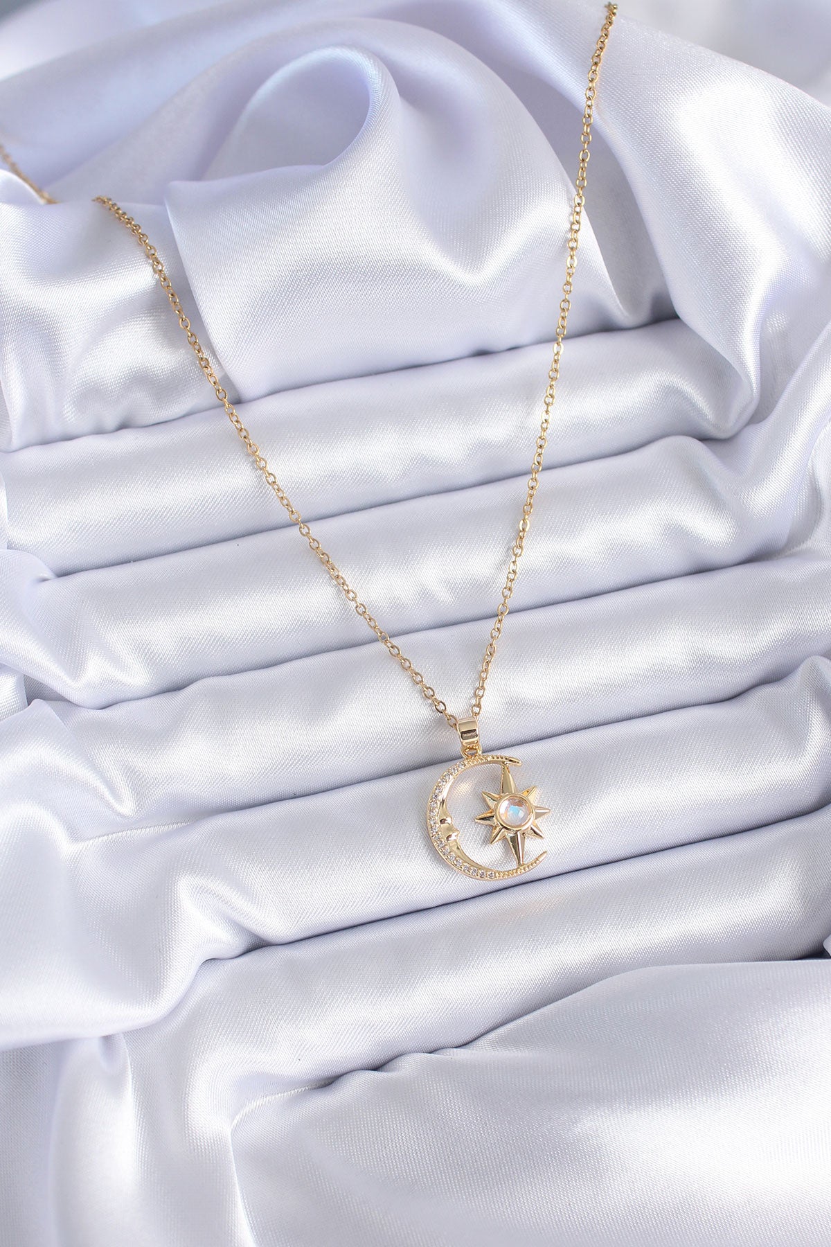 BKO7688 - 316L Çelik Gold Renk Zirkon Taşlı Ay Yıldız Model Kadın Kolye