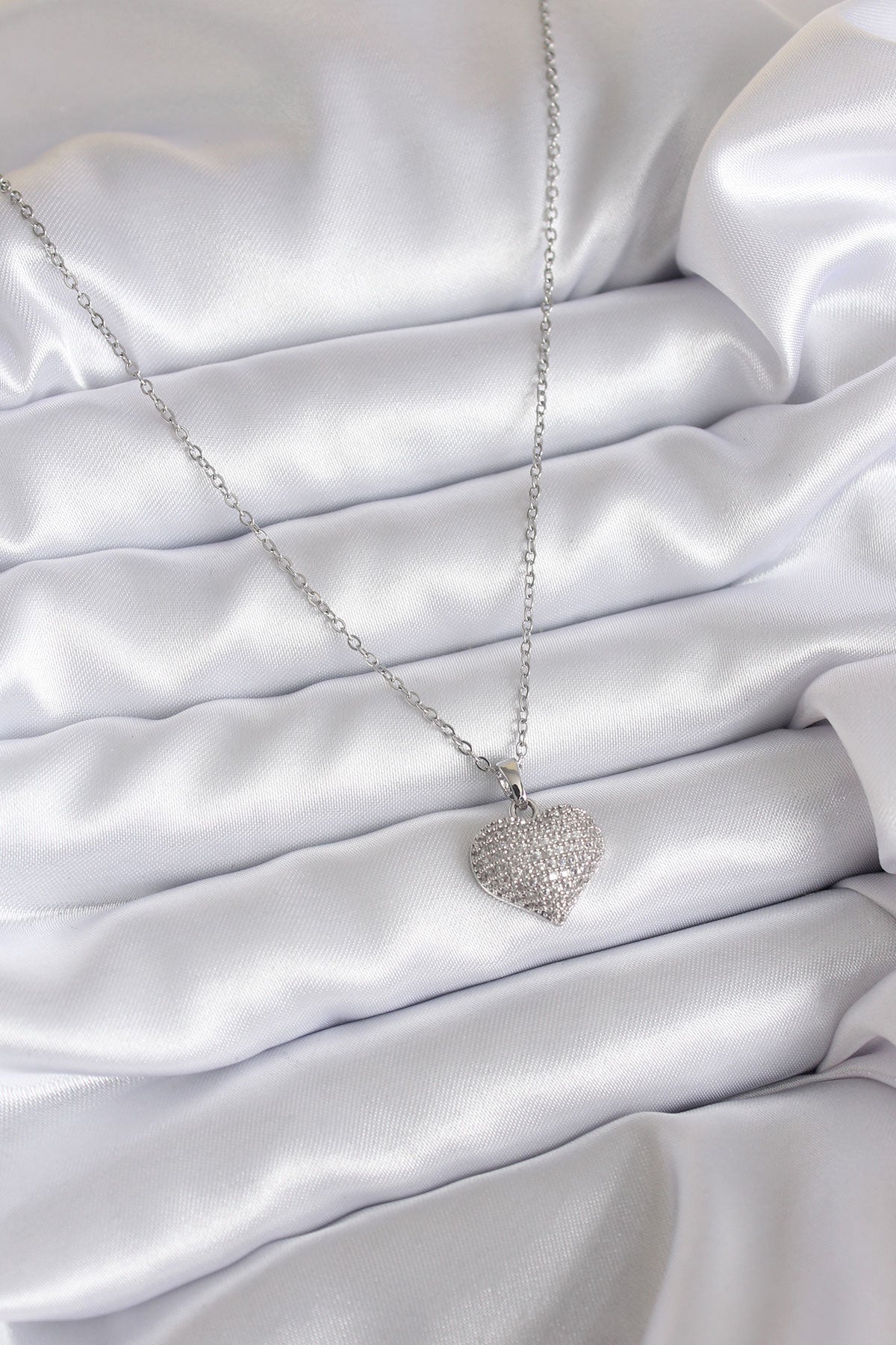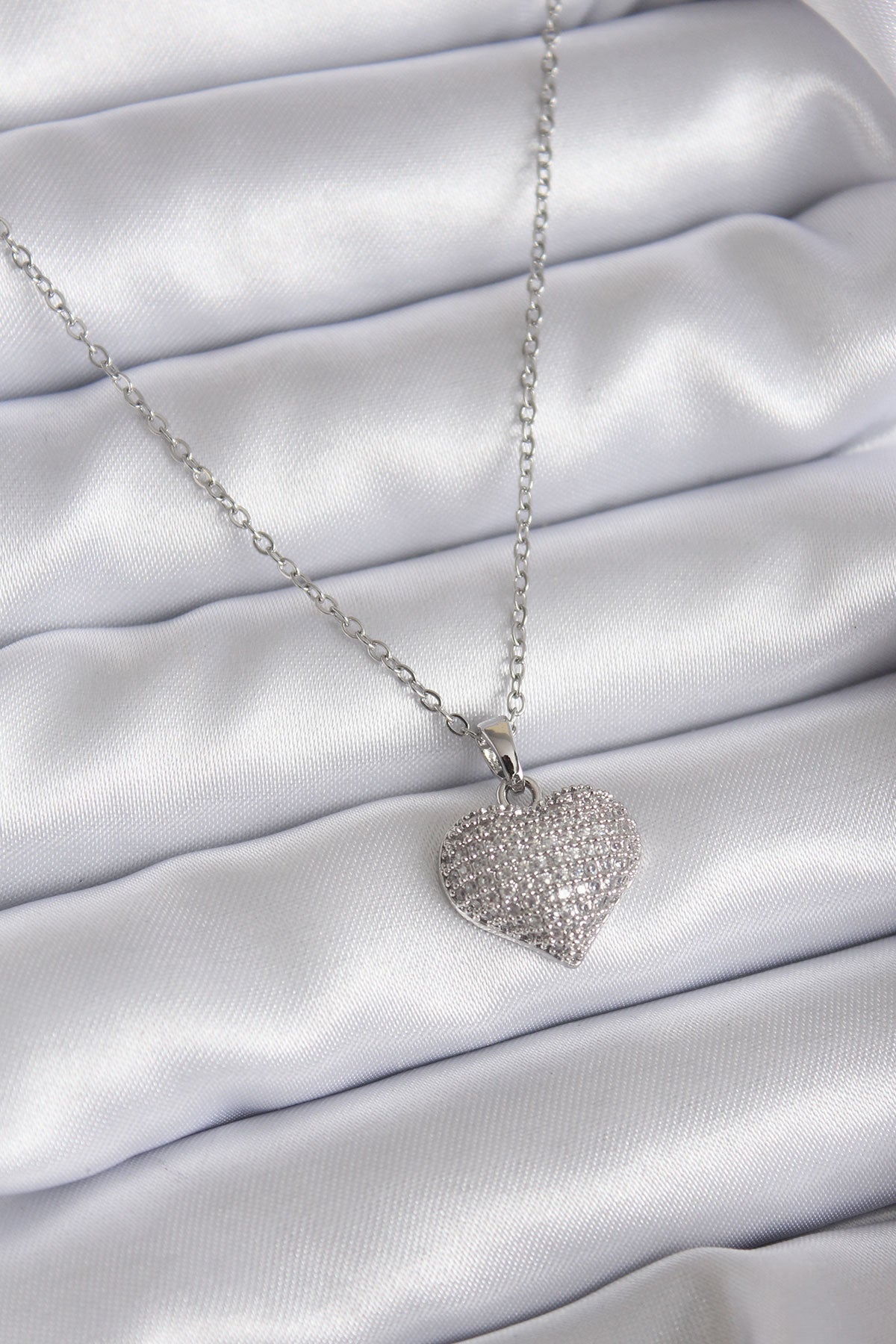 - Ürün Adı: 316L Çelik Zincir Gümüş Renk Zirkon Taş Detay Kalp Model Kadın Kolye