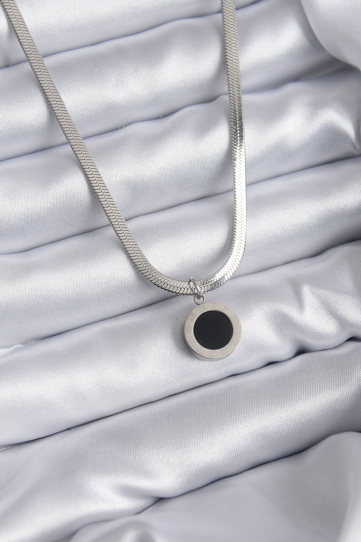 BKO7866 - 316L Çelik Gümüş Renk İtalyan Zincir Model İşleme Detay Kadın Kolye