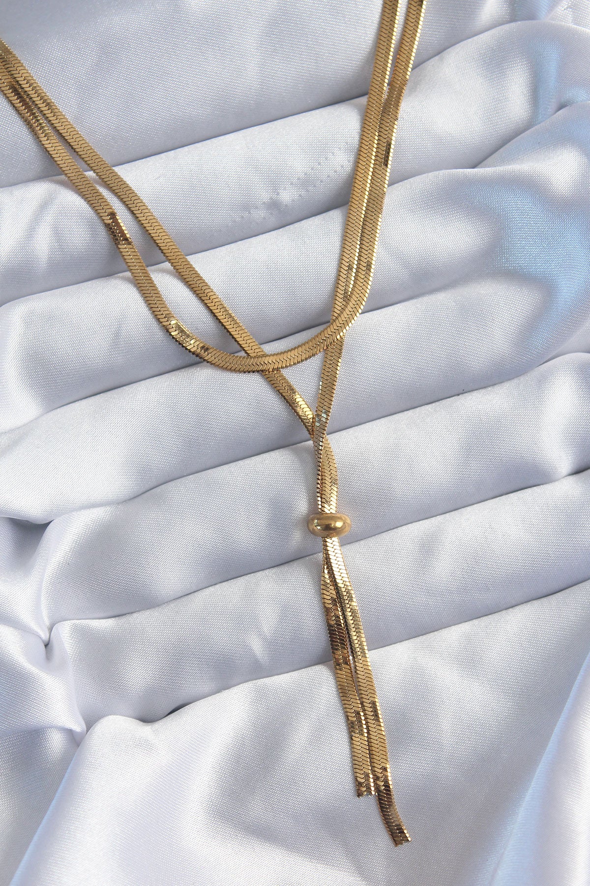 - Ürün Adı: 316L Çelik Gold Renk 2'li İtalyan Zincir Asansör Model Sallantı Detay Kadın Kolye