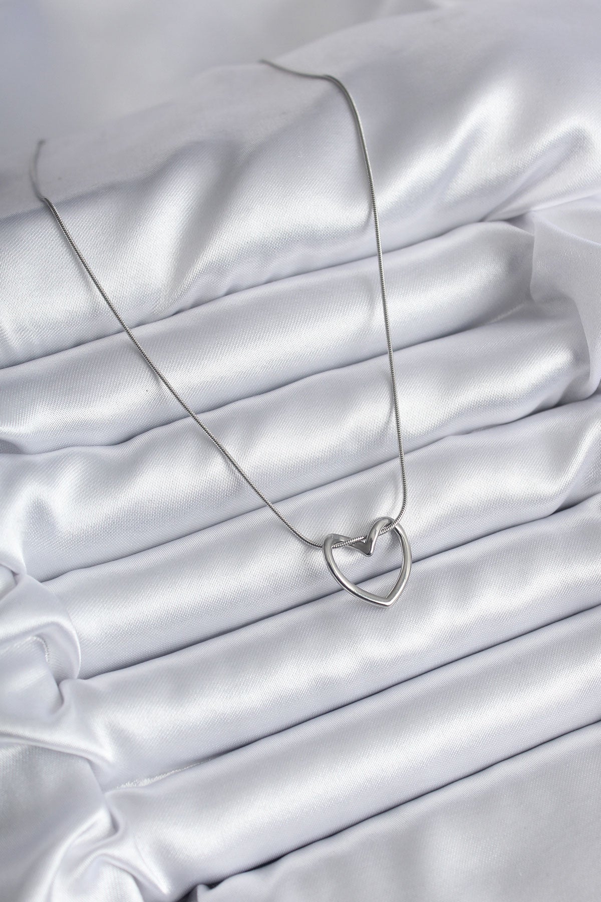316L Çelik Gümüş Renk Kalp Model Kadın Kolye |