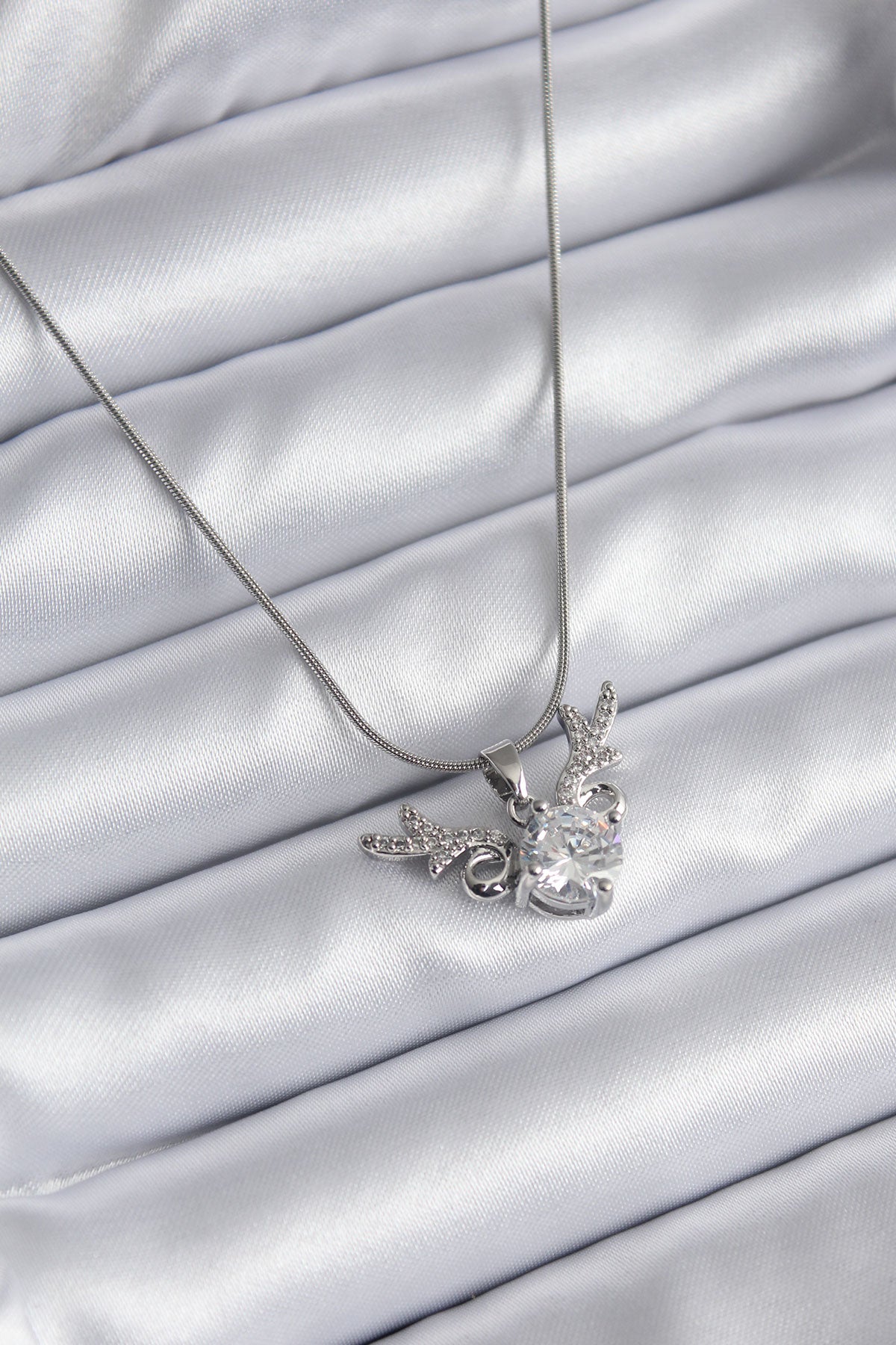 BKO8133 - 316L Çelik Gümüş Renk Zirkon Taşlı Boynuz Model Kadın Kolye