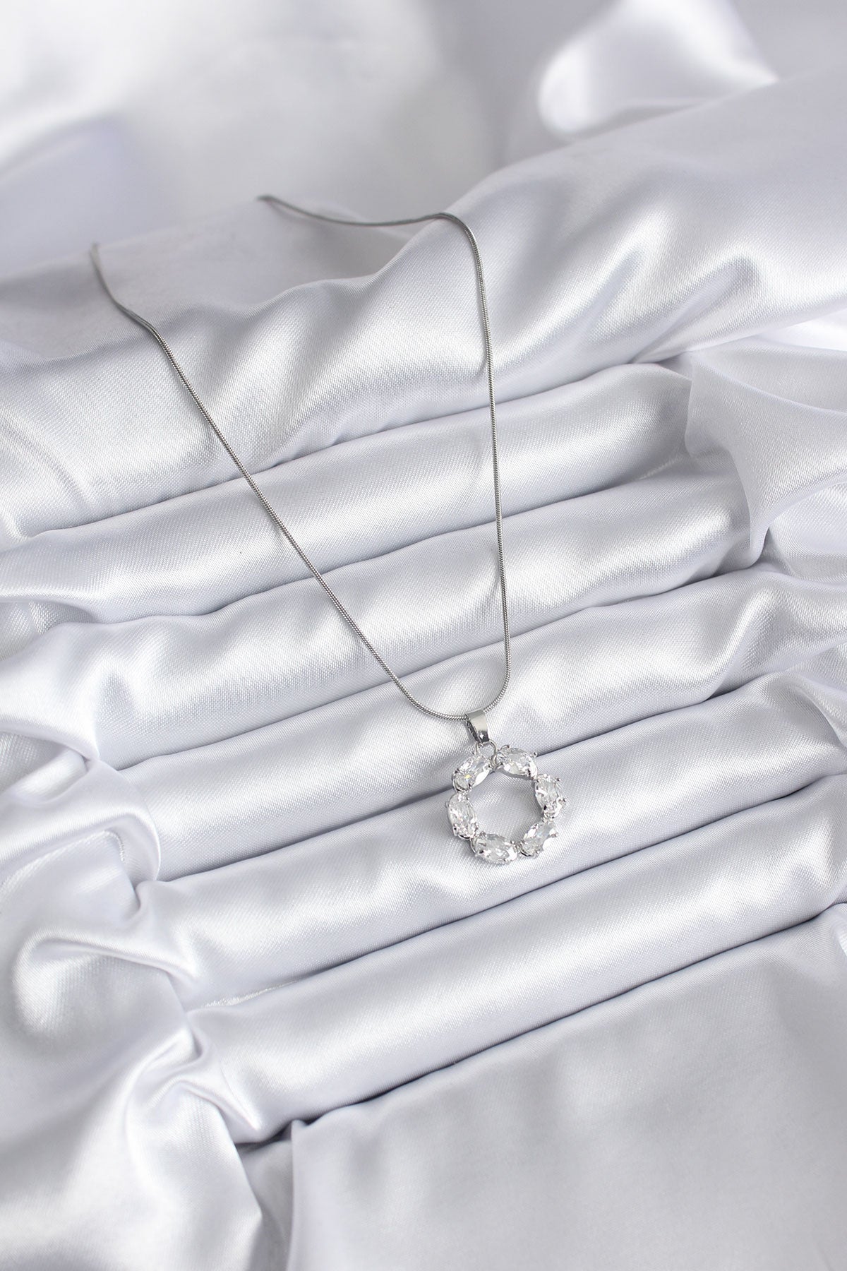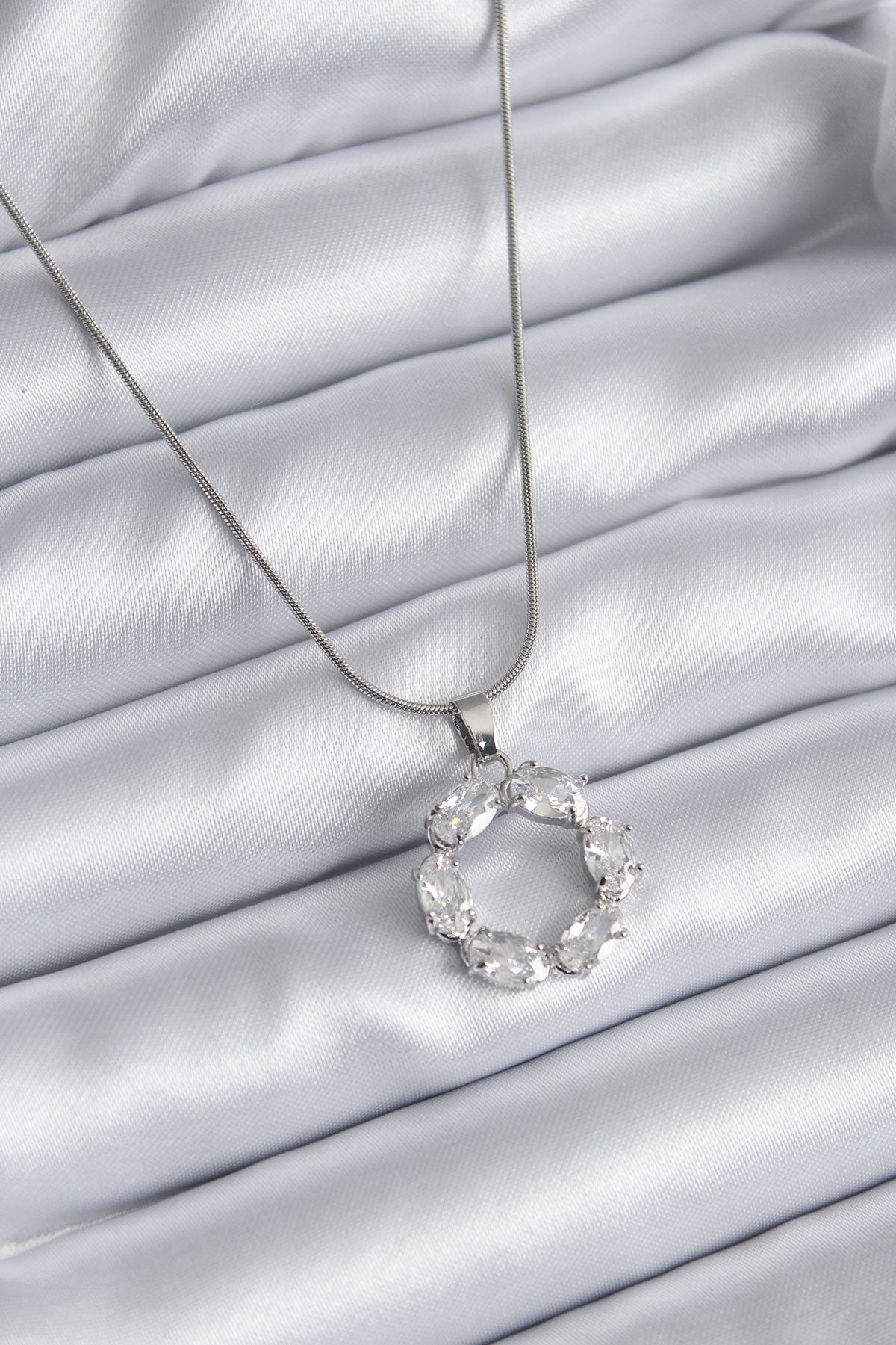 316L Çelik Gümüş Renk Zirkon Taşlı Kadın Kolye |