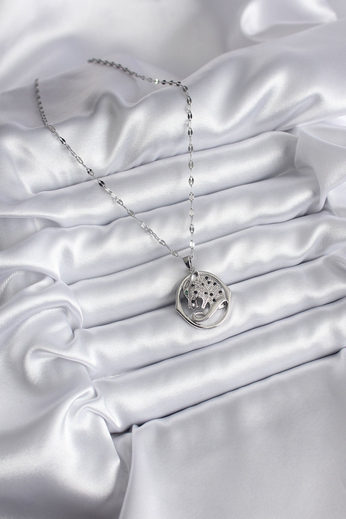BKO8177 - 316L Çelik Gümüş Renk Zirkon Taşlı Jaguar Model Kadın Kolye