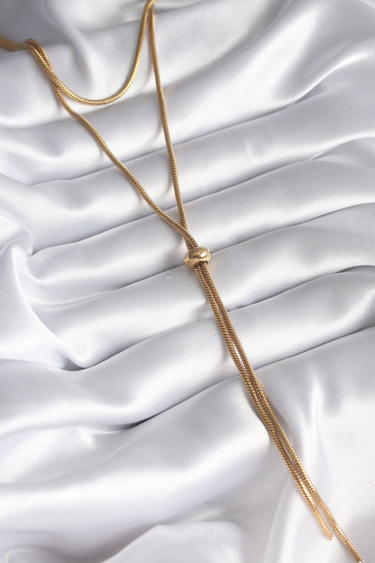 BKO8286 - 316L Çelik Gold Renk Tüp Zincir Asansör Model Kadın Kolye