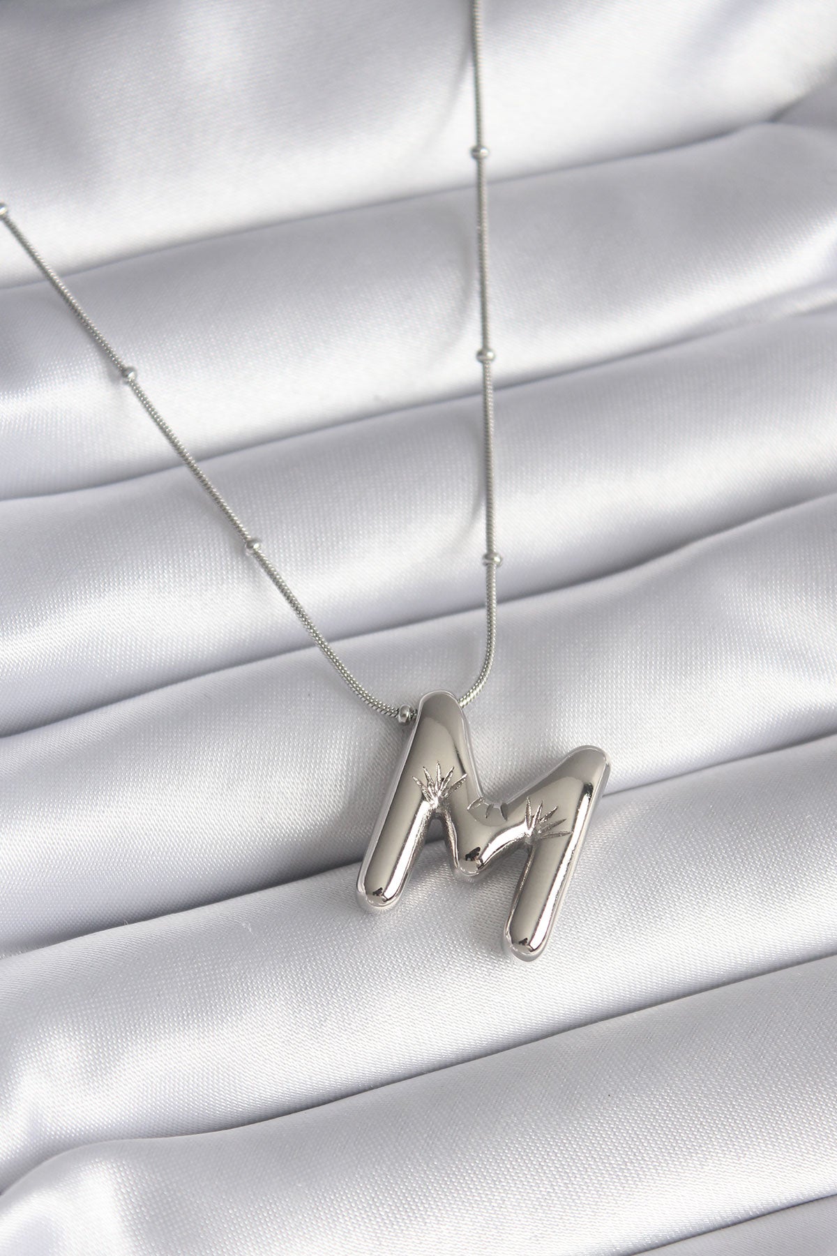 - Ürün Adı: 316L Çelik Gümüş Renk Bubble "M" Harf Model Kadın Kolye