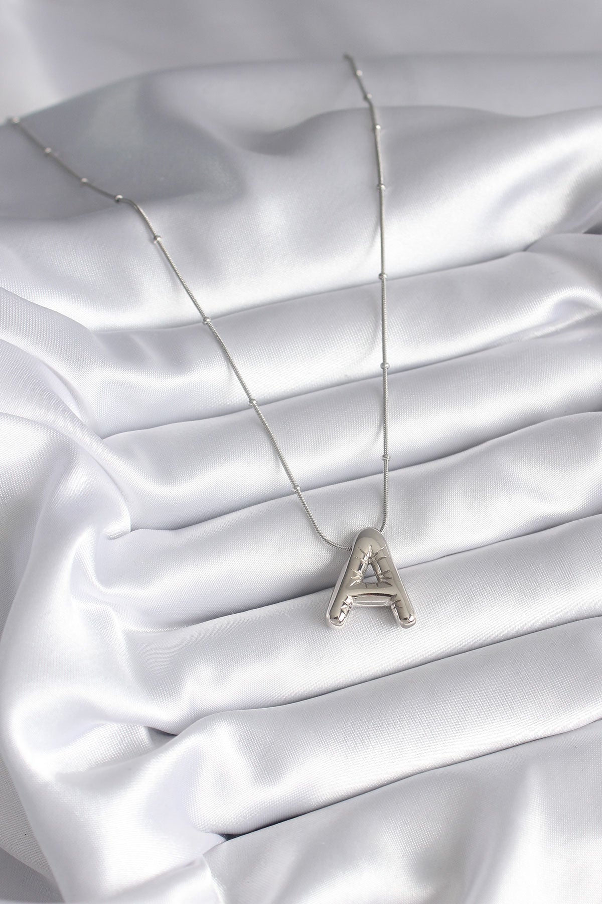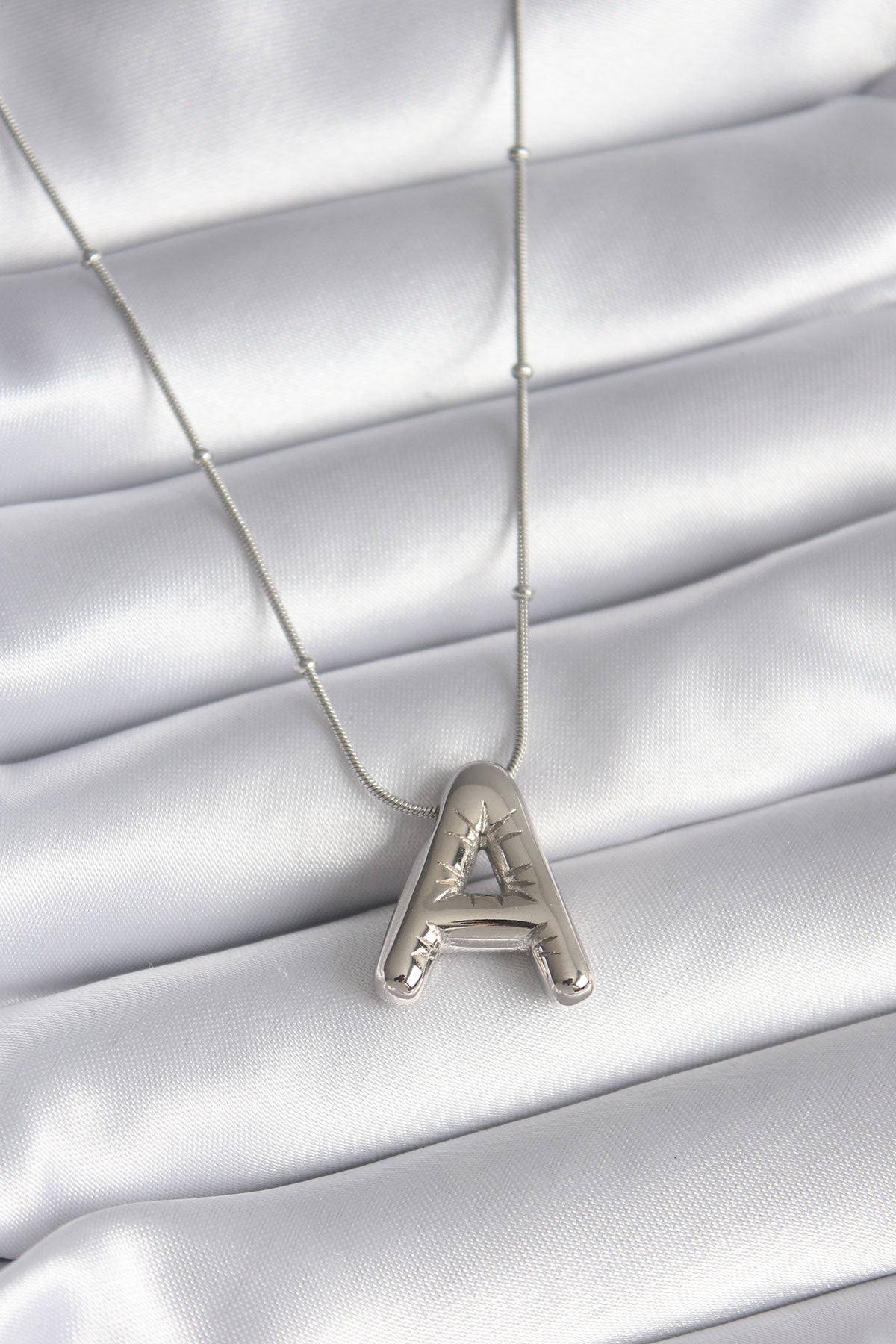 - Ürün Adı: 316L Çelik Gümüş Renk Bubble "A" Harf Model Kadın Kolye