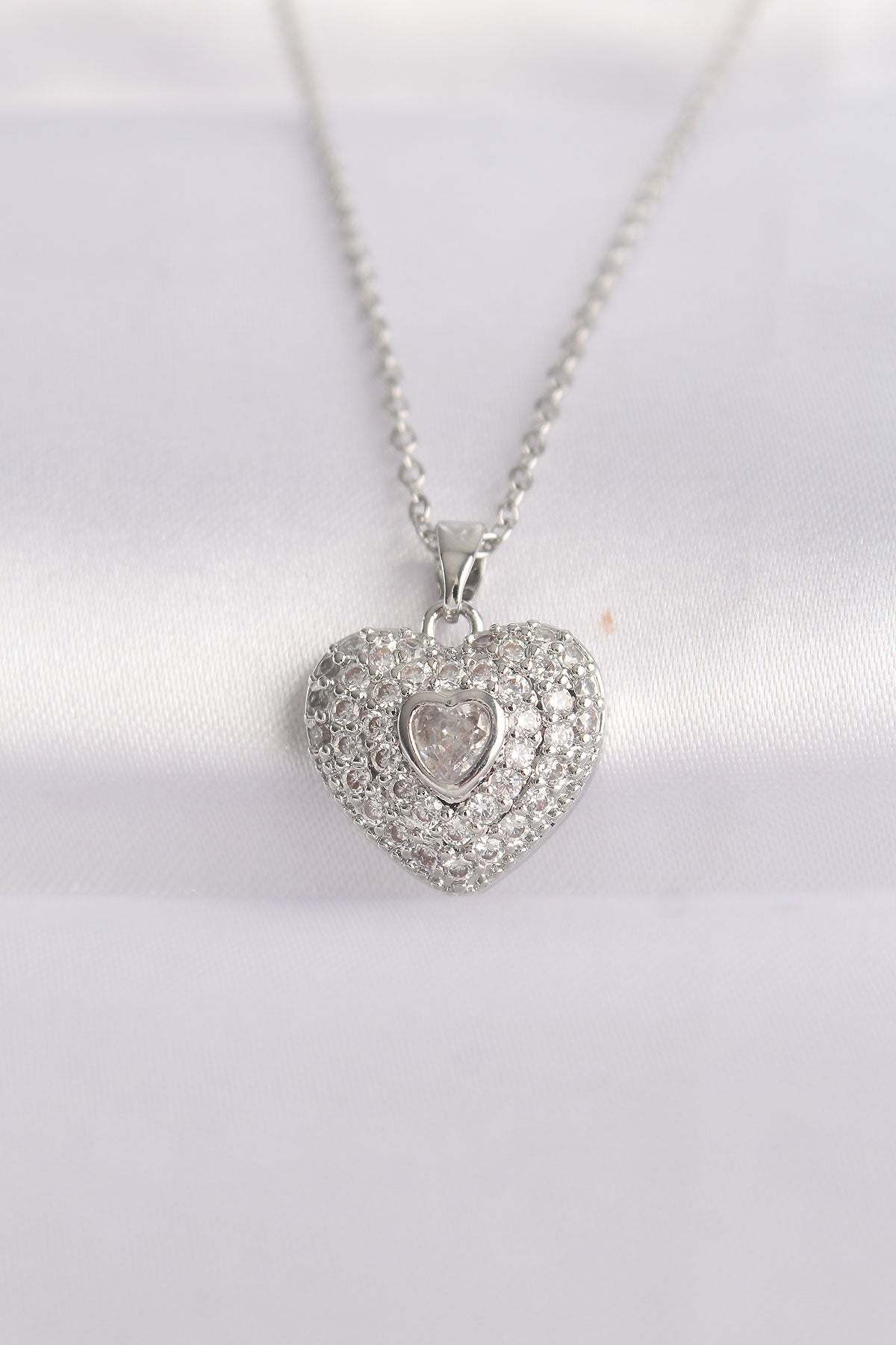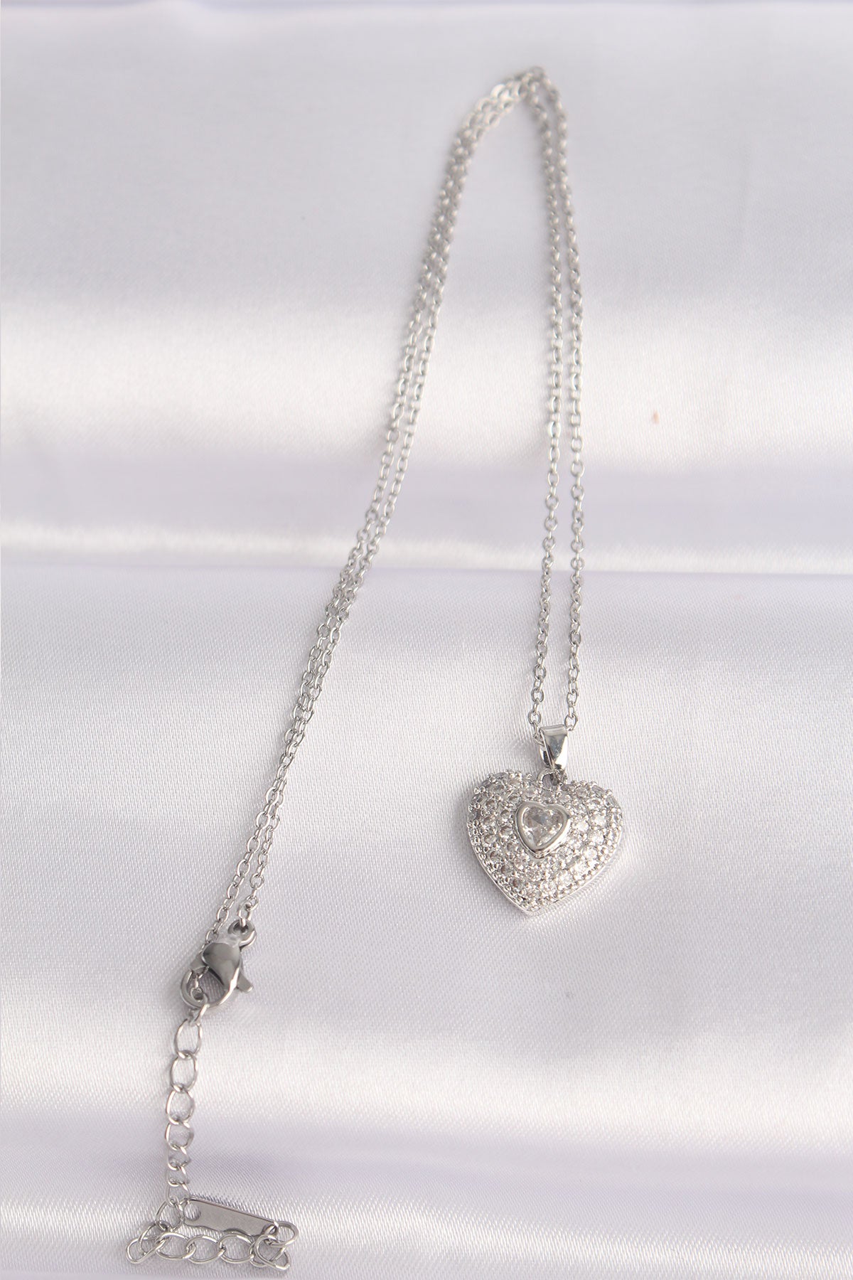 BKO8623 - 316L Çelik Zincir Gümüş Renk Zirkon Taşlı Kalp Kolye