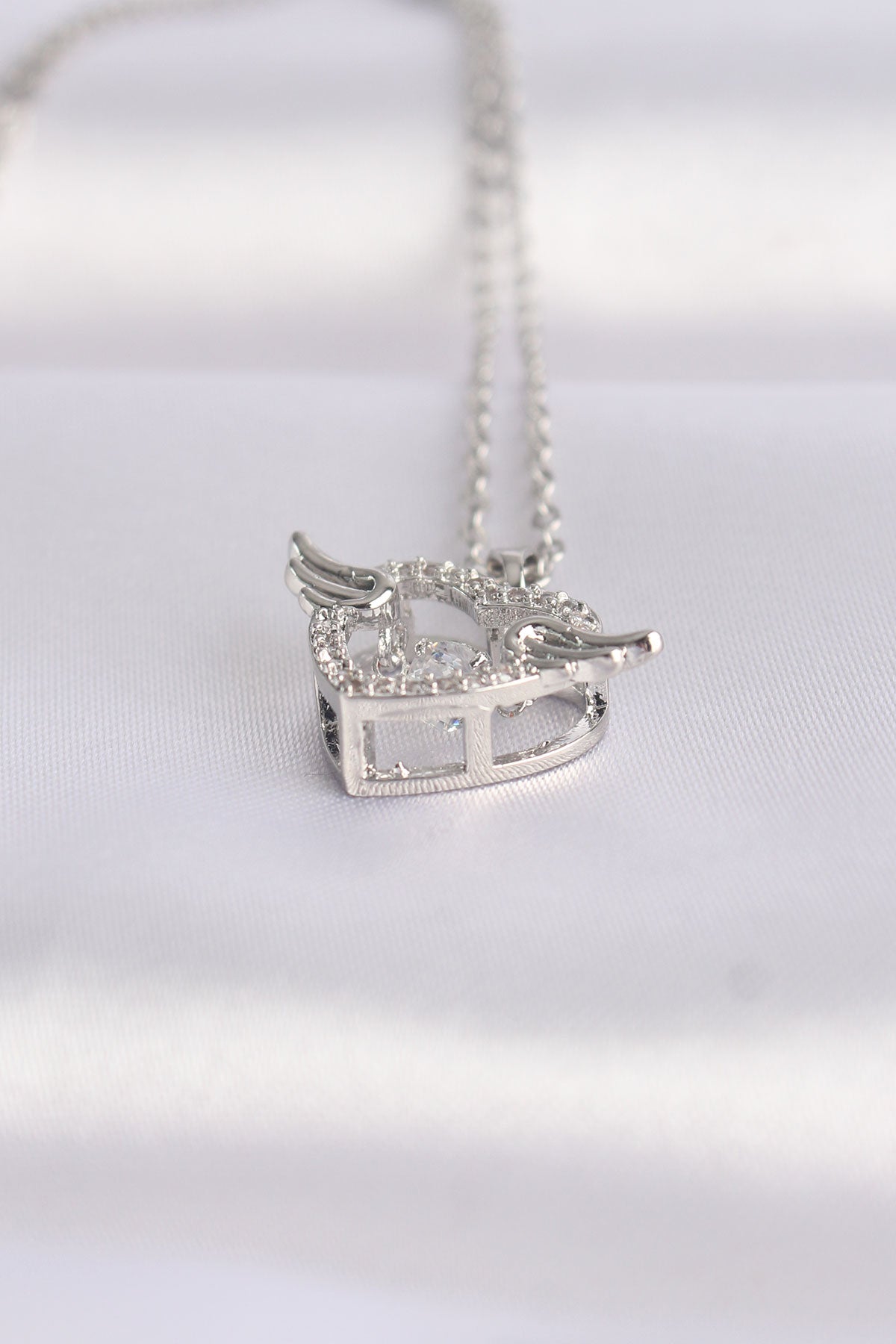 Ürün Adı: | 316L Çelik Zincir Gümüş Renk Zirkon Taşlı Kanatlı Kalp Kolye |