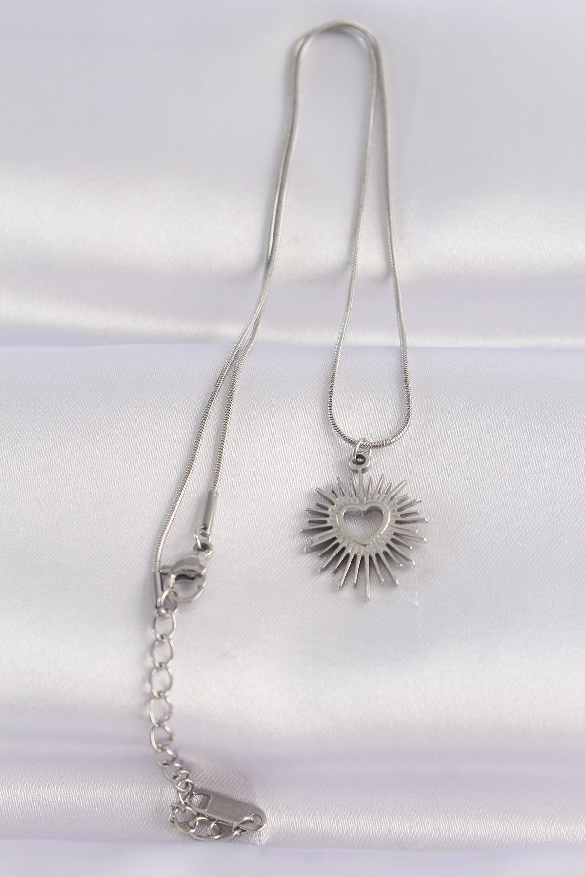 BKO8658 - 316L Çelik Zincir Gümüş Renk Kalp Güneşi Tasarımlı Kolye