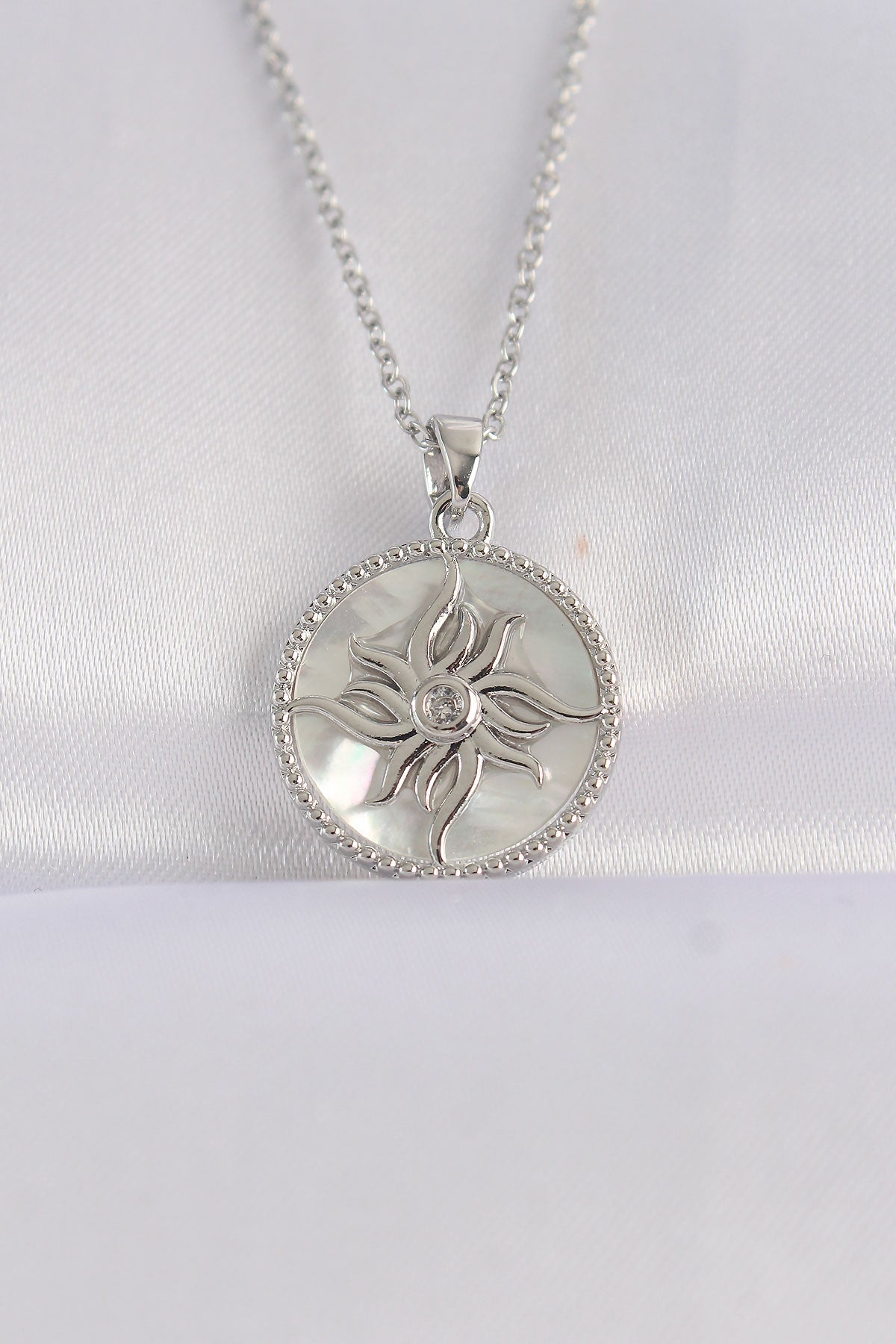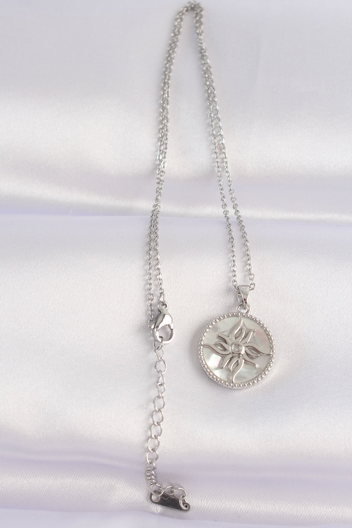 BKO8663 - 316L Çelik Zincir Gümüş Renk Oval Tasarımlı Güneş Kolye