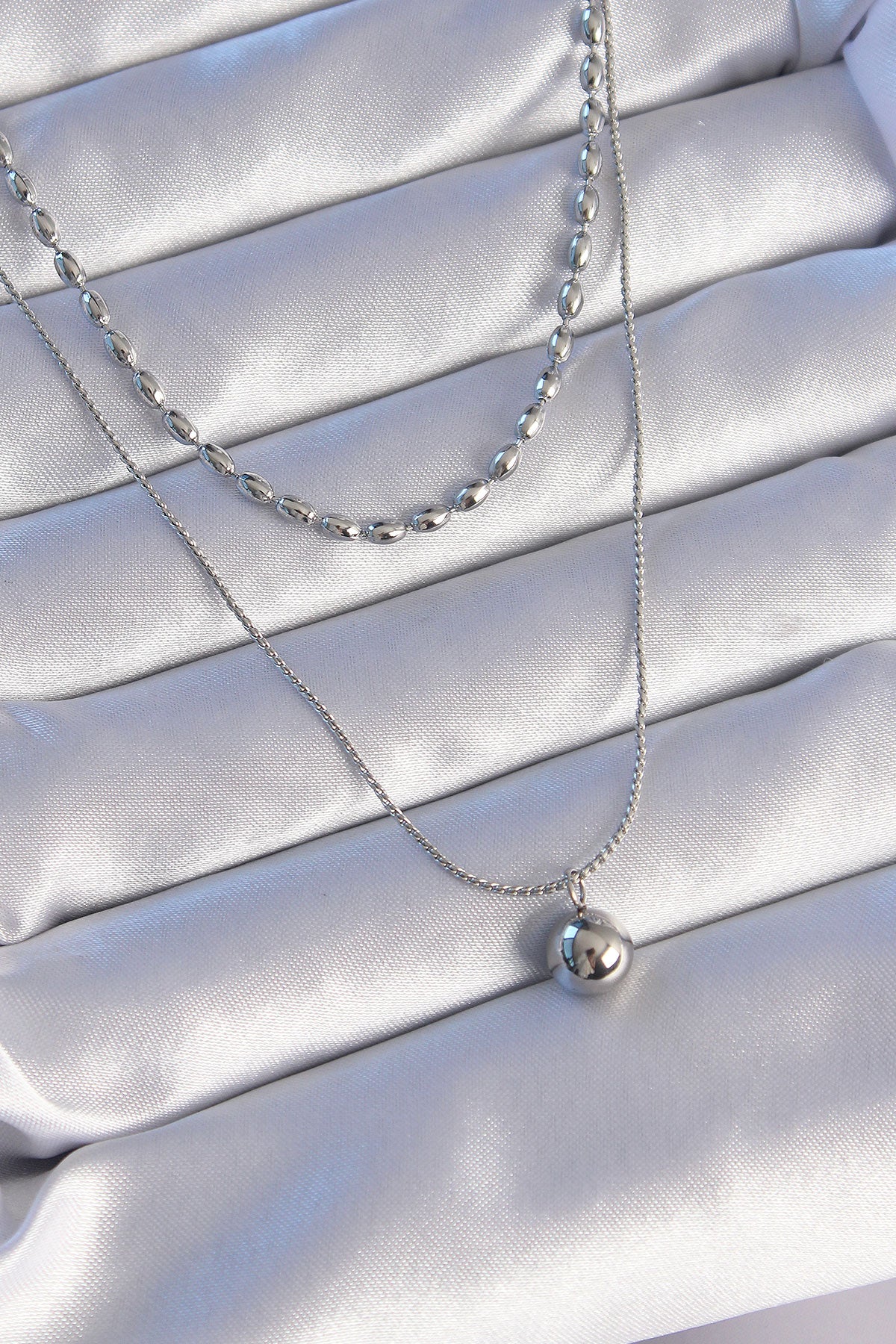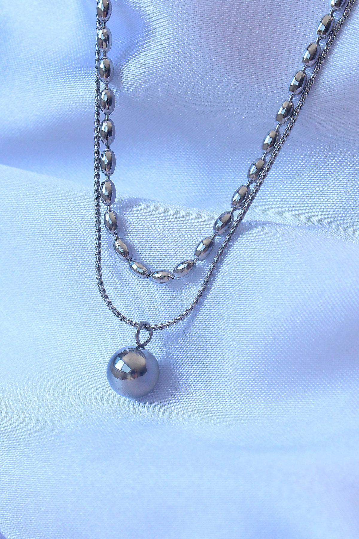 - Ürün Adı: 316L Çelik Çift Zincirli Gümüş Renk Topçuk Model Kolye