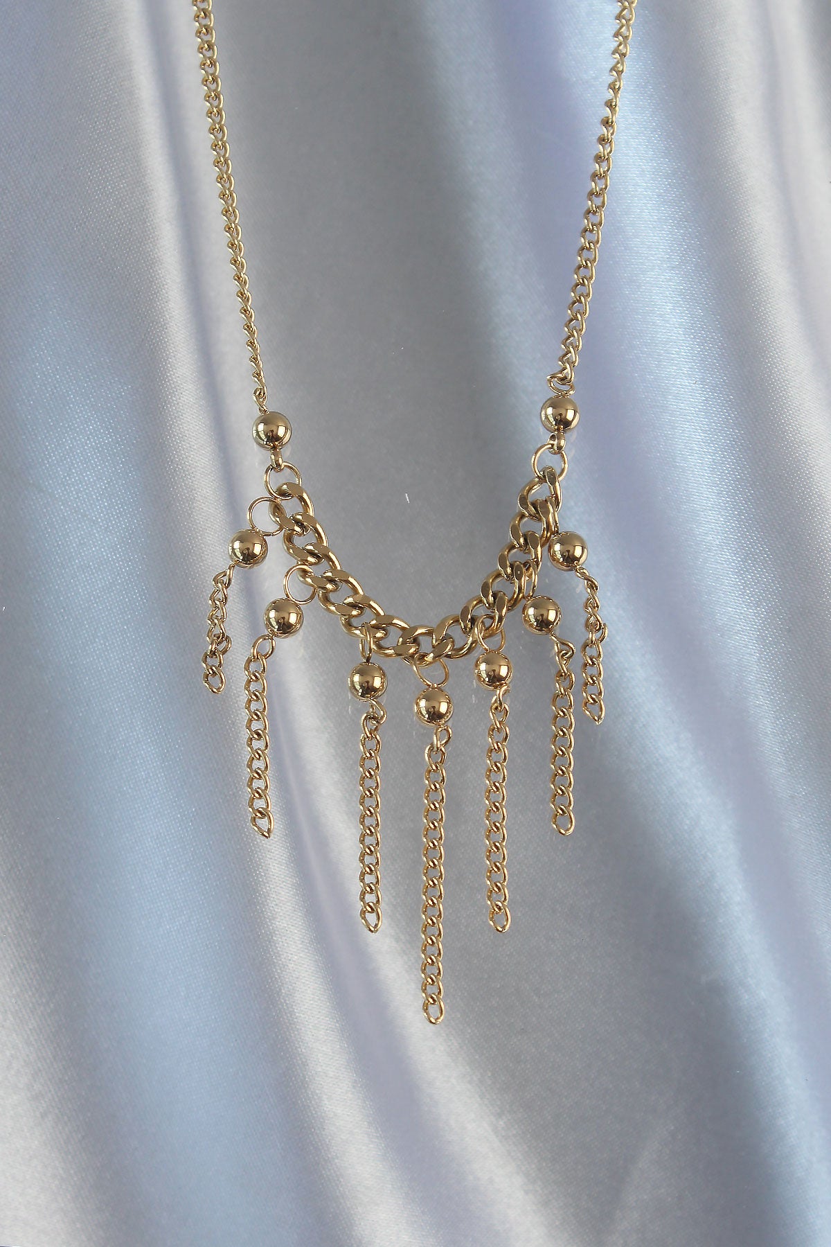 - Ürün Adı: 316L Çelik Zincir Gold Renk Topçuk Detay Sallantılı Zincir Kolye