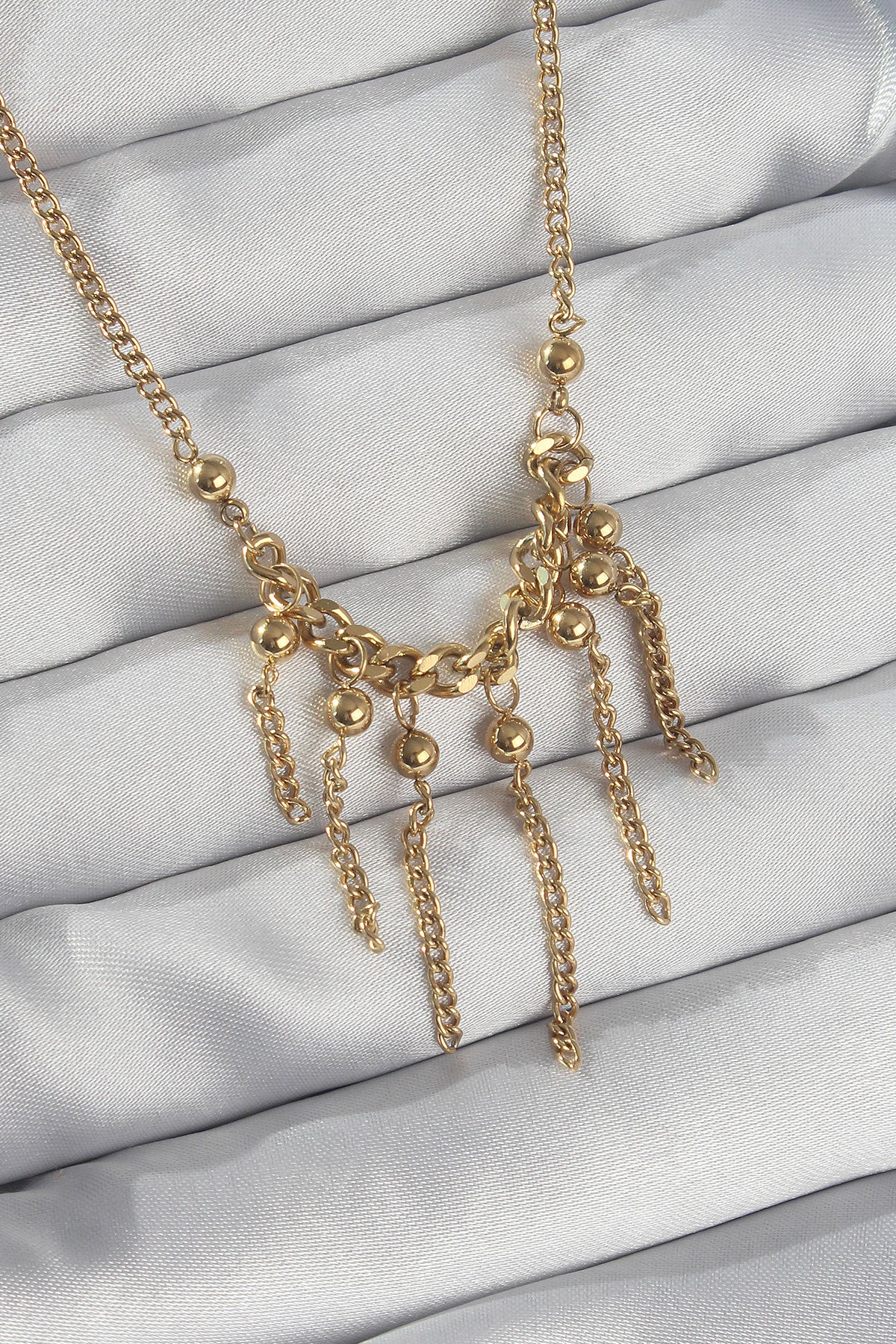 BKO8911 - 316L Çelik Zincir Gold Renk Topçuk Detay Sallantılı Zincir Kolye