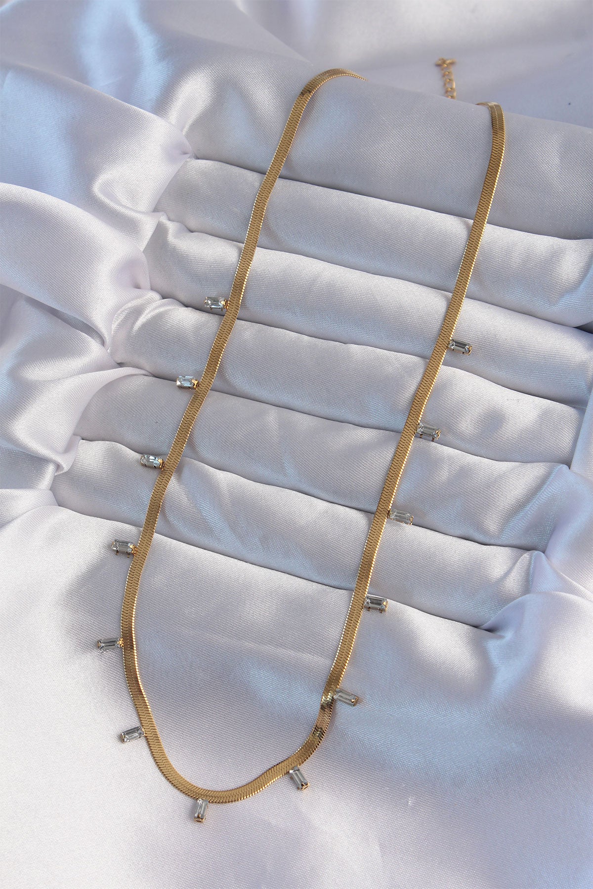 - Ürün Adı: 316L Çelik Gold Renk Baget Taşlı İtalyan Zincir Kolye
