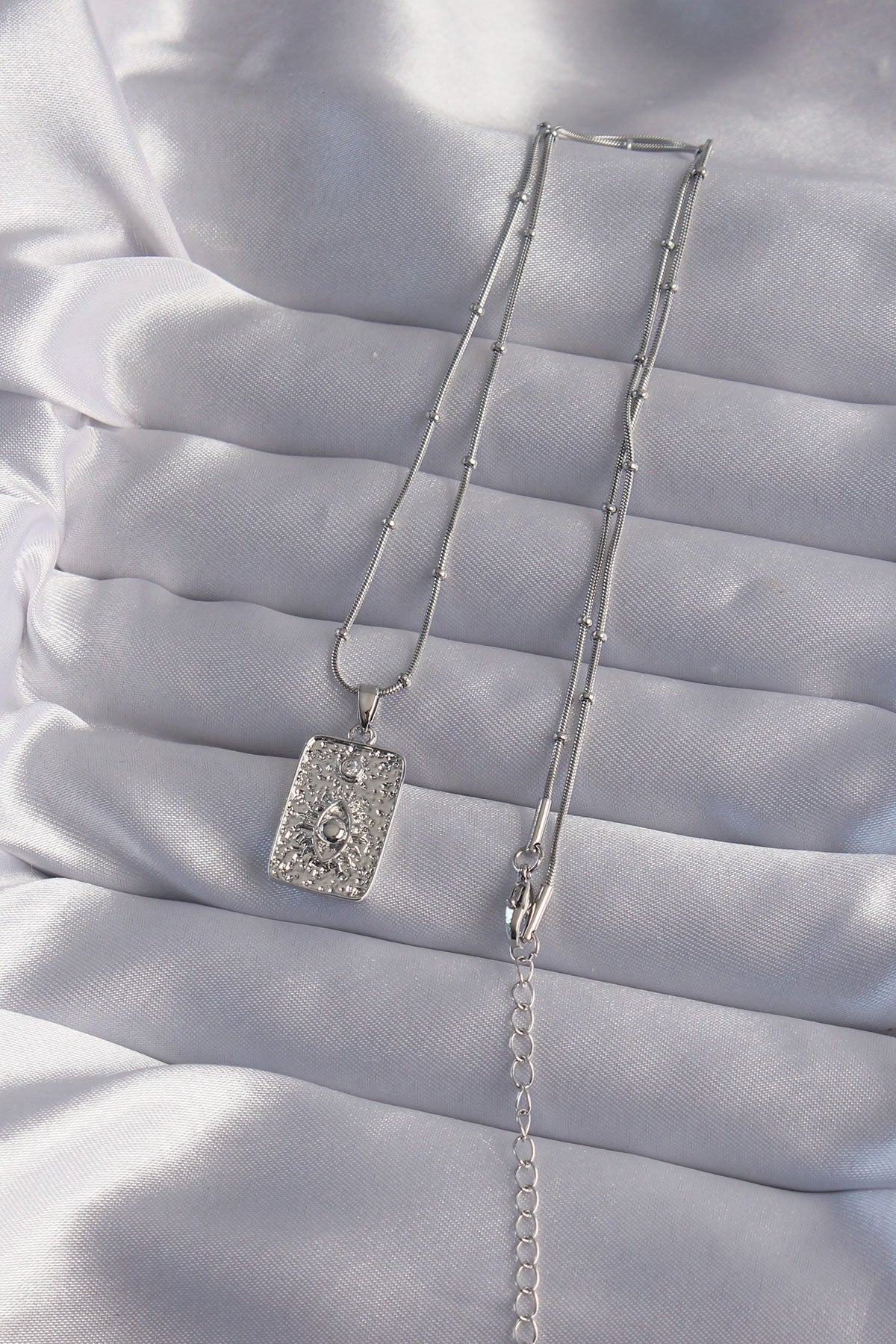 BKO9018 - 316L Çelik Zincir Gümüş Renk Lazer İşlemeli Göz Figür Tarot Kolye