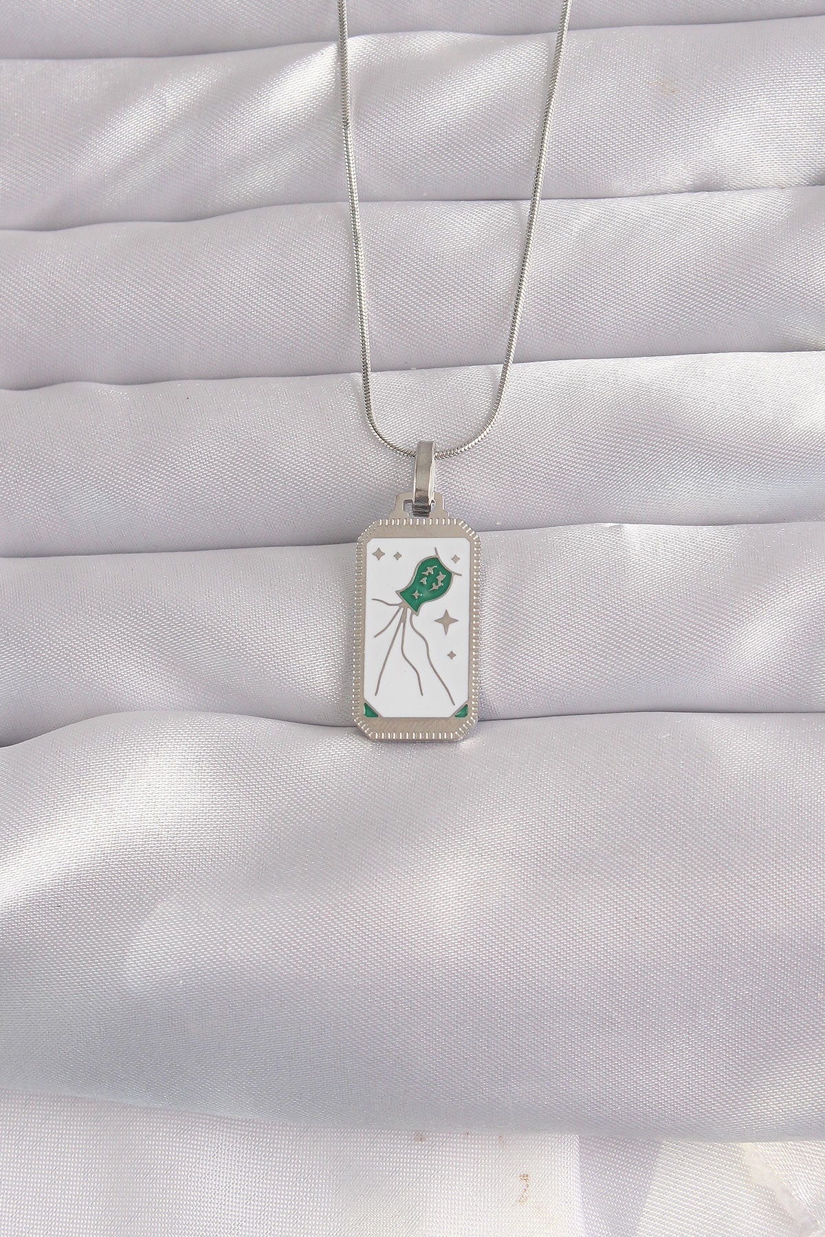 - Ürün Adı: 316L Çelik Gümüş Renk Beyaz Mineli Tarot Kolye
