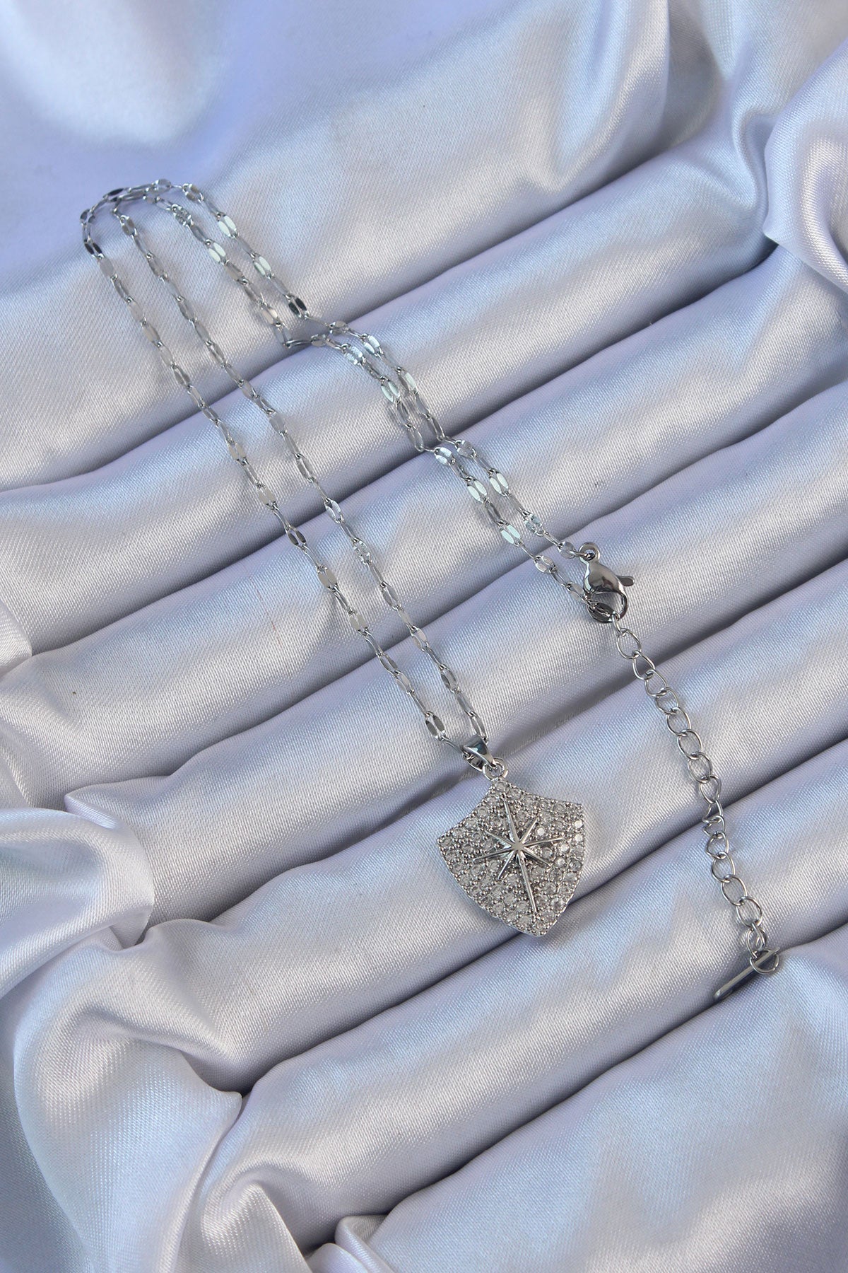 BKO9126 - 316L Çelik Zincir Gümüş Renk Zirkon Taşlı Kutup Yıldızı Kolye