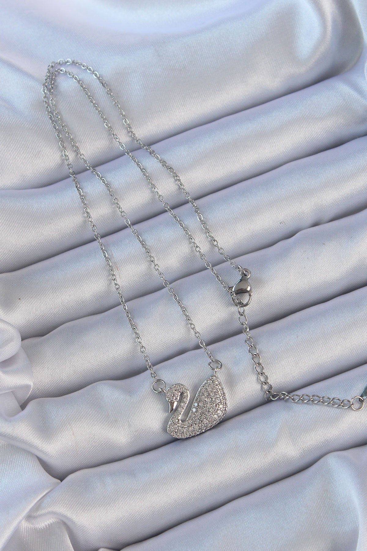 BKO9150 - 316L Çelik Zincir Gümüş Renk Zirkon Taşlı Kuğu Kolye
