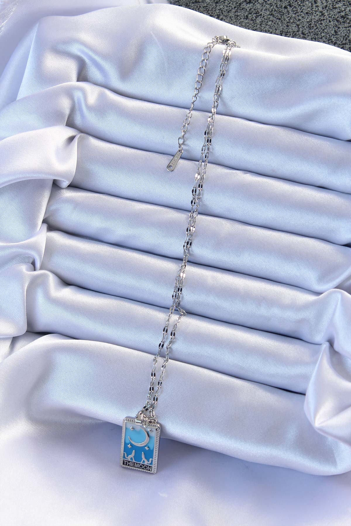 BKO9212 - 316L Çelik Zincir Gümüş Renk Mavi Mineli Ay Figür Tarot Kolye