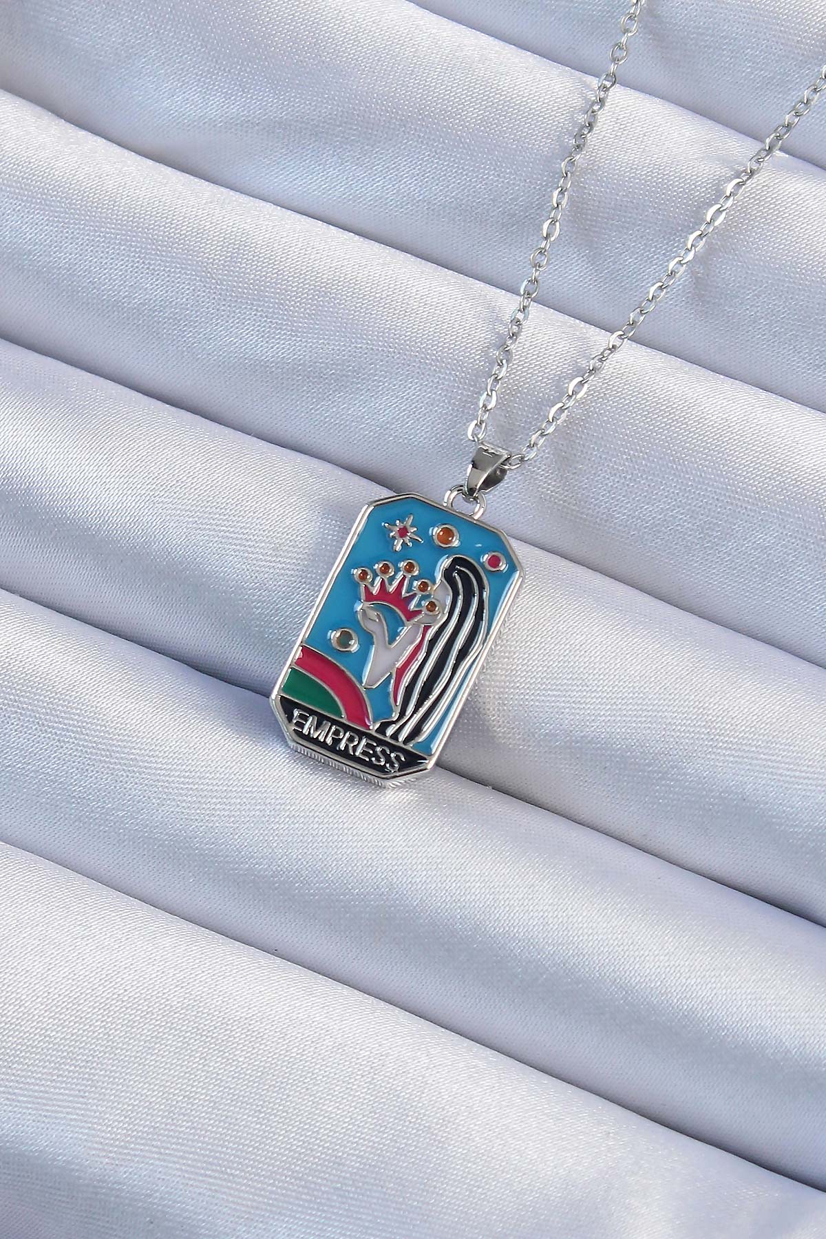 - Ürün Adı: 316L Çelik Zincir Gümüş Renk Taç ve Kız Figürlü Renkli Mineli Tarot Kolye