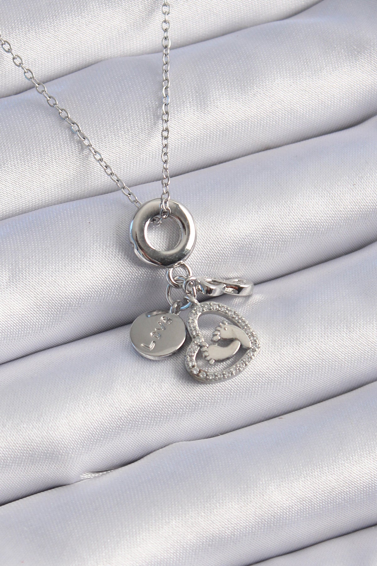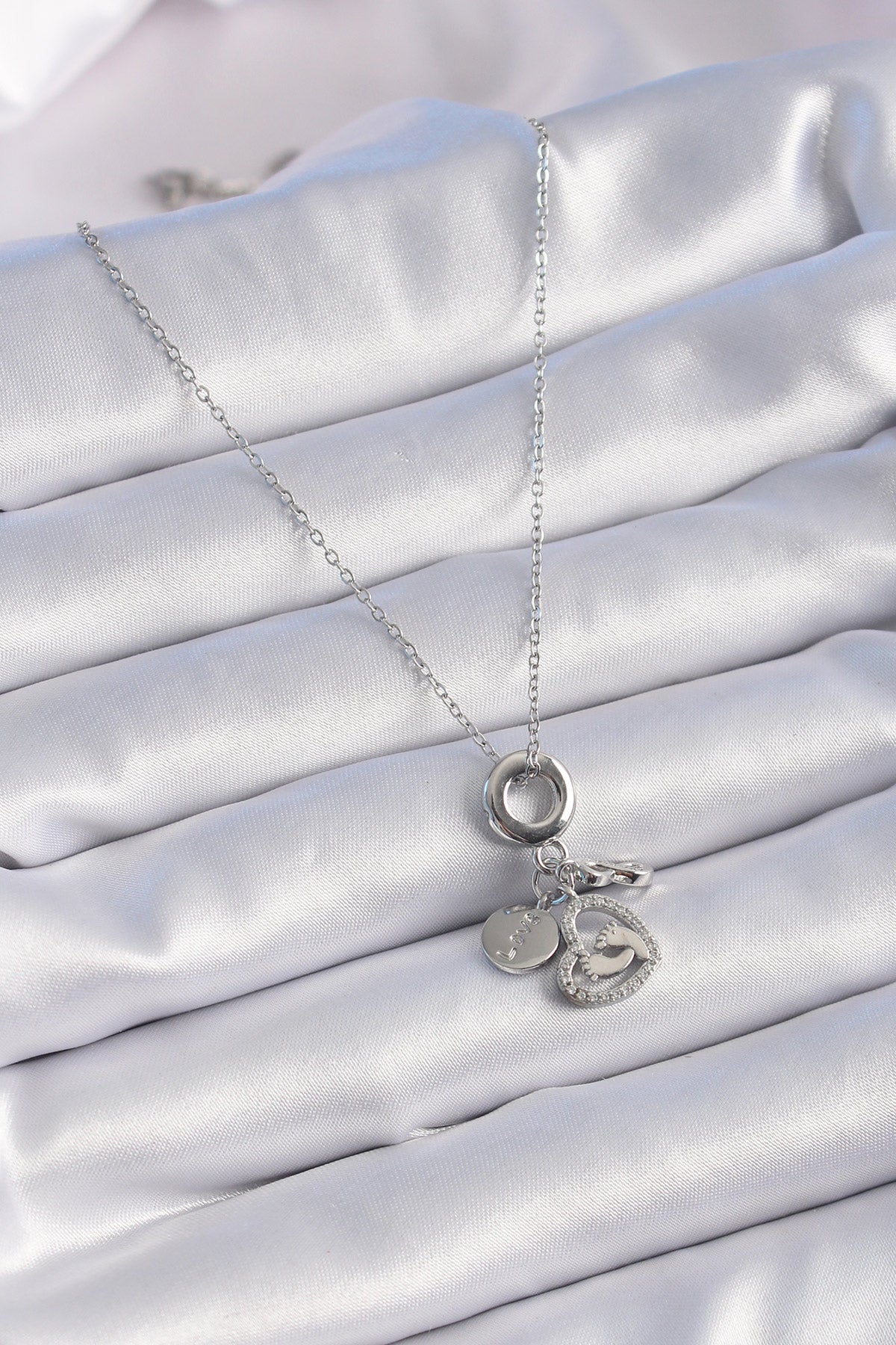- Ürün Adı: 316L Çelik Gümüş Renk Zirkon Taş Detay Kalp Model Charm Kadın Kolye