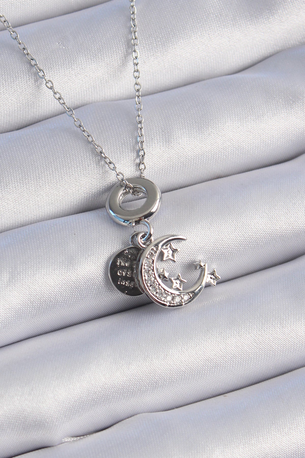 - Ürün Adı: 316L Çelik Gümüş Renk Zirkon Taşlı Ay Yıldız Figür Charm Model Kadın Kolye