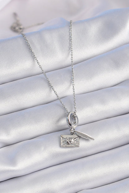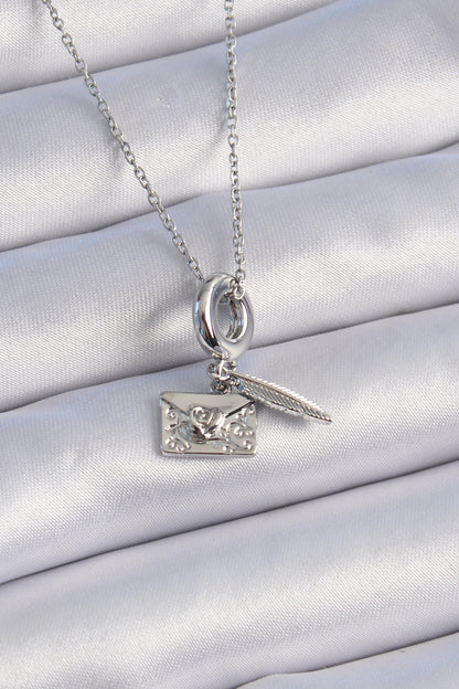 BKO9313 - 316L Çelik Gümüş Renk Kalp Detay Mektup Figür Charm Model Kadın Kolye