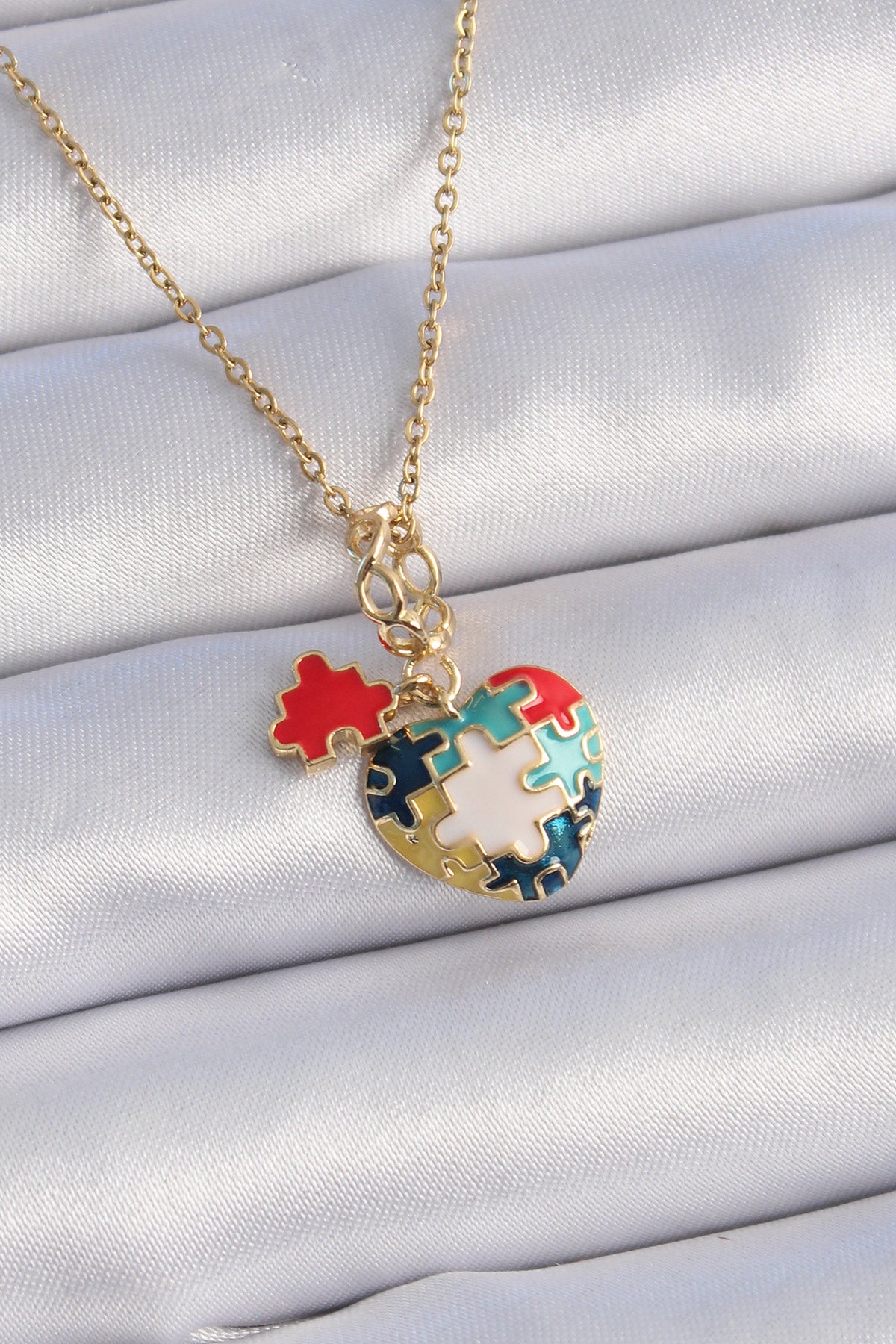 - Ürün Adı: 316L Çelik Gold Renk Yapboz Motif Kalp Figür Charm Model Kadın Kolye