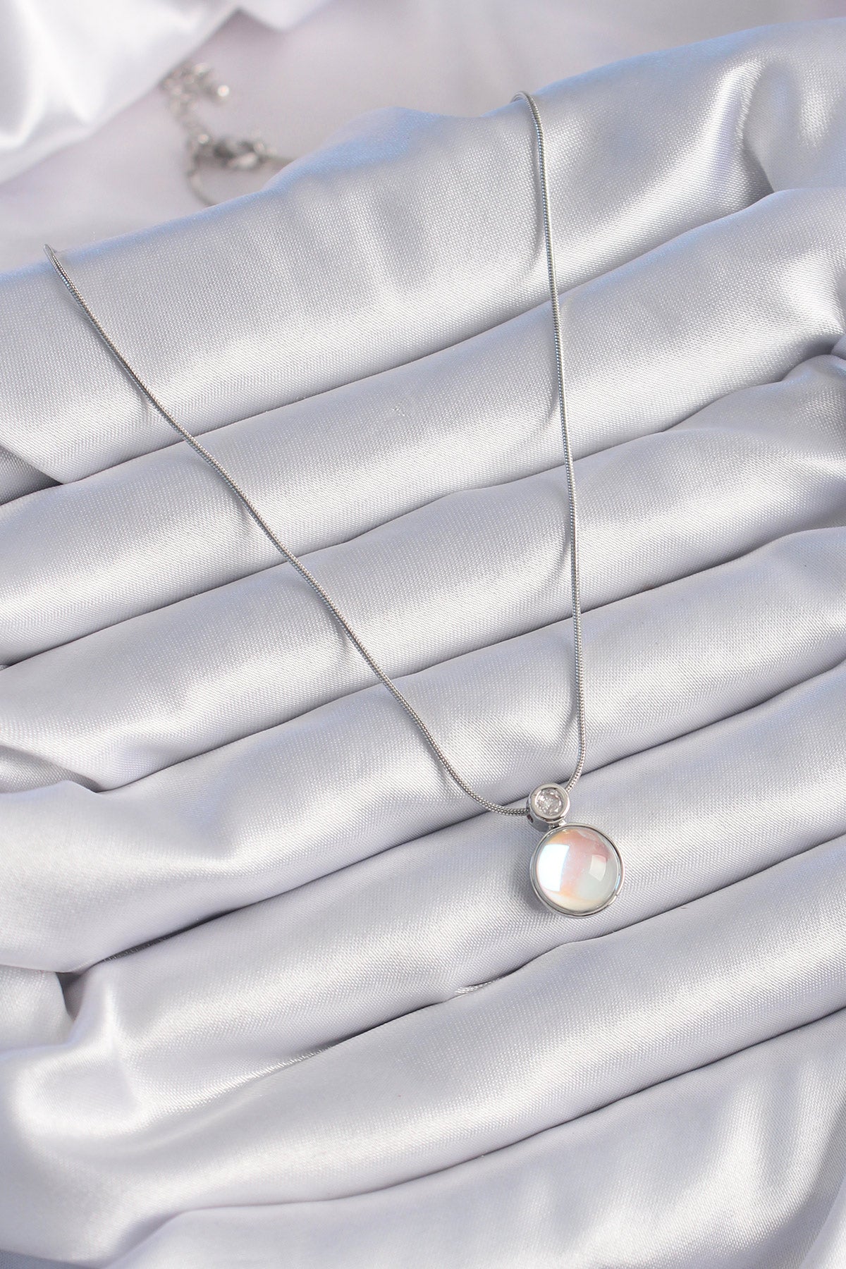 - Ürün Adı: 316L Çelik Gümüş Renk Beyaz Sedefli Vintage Model Kadın Kolye