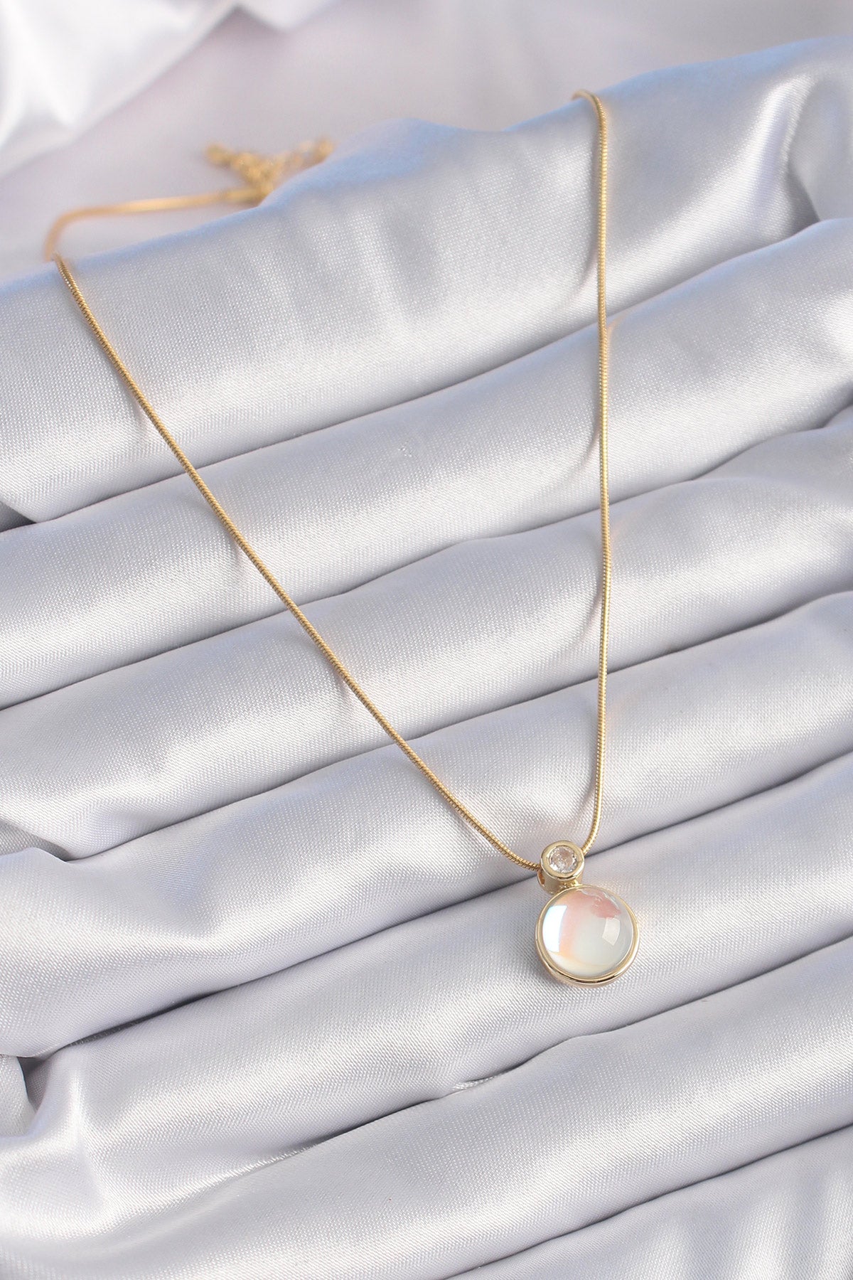 - Ürün Adı: 316L Çelik Gold Renk Beyaz Sedefli Vintage Kadın Kolye