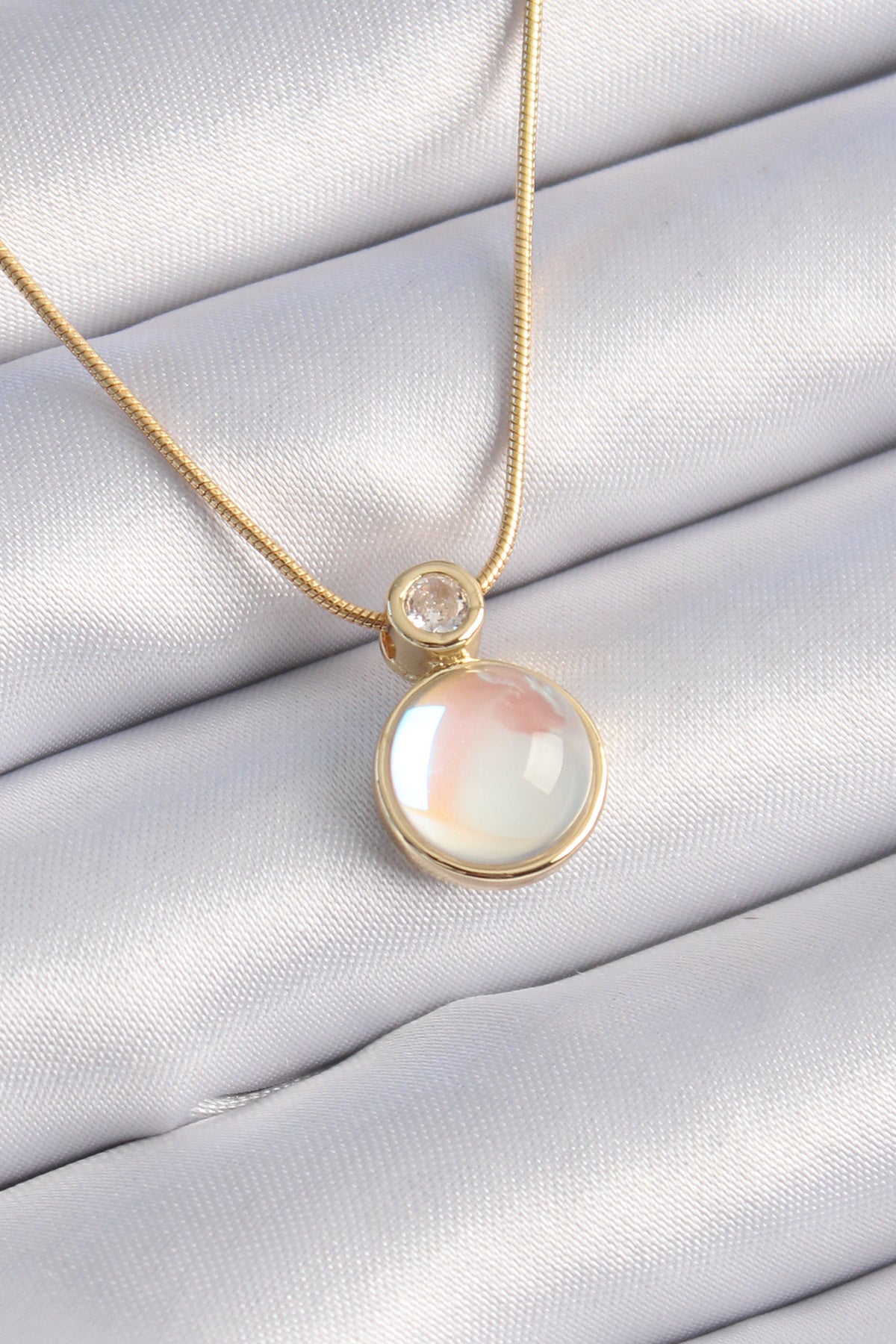 BKO9328 - 316L Çelik Gold Renk Beyaz Sedefli Vintage Kadın Kolye