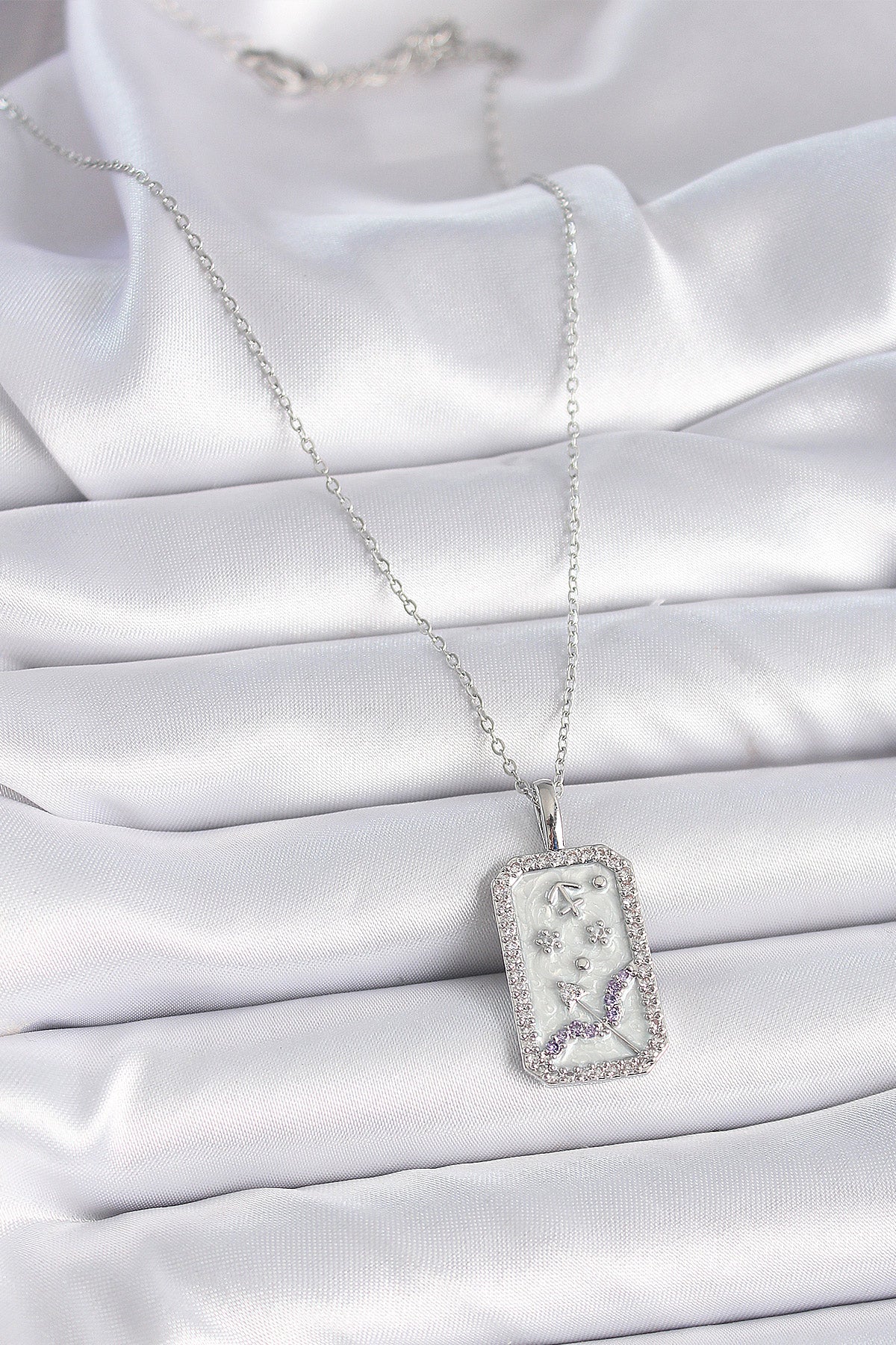 - Ürün Adı: 316L Çelik Gümüş Renk Zincir Yay Burcu Zirkon Taşlı Kadın Kolye