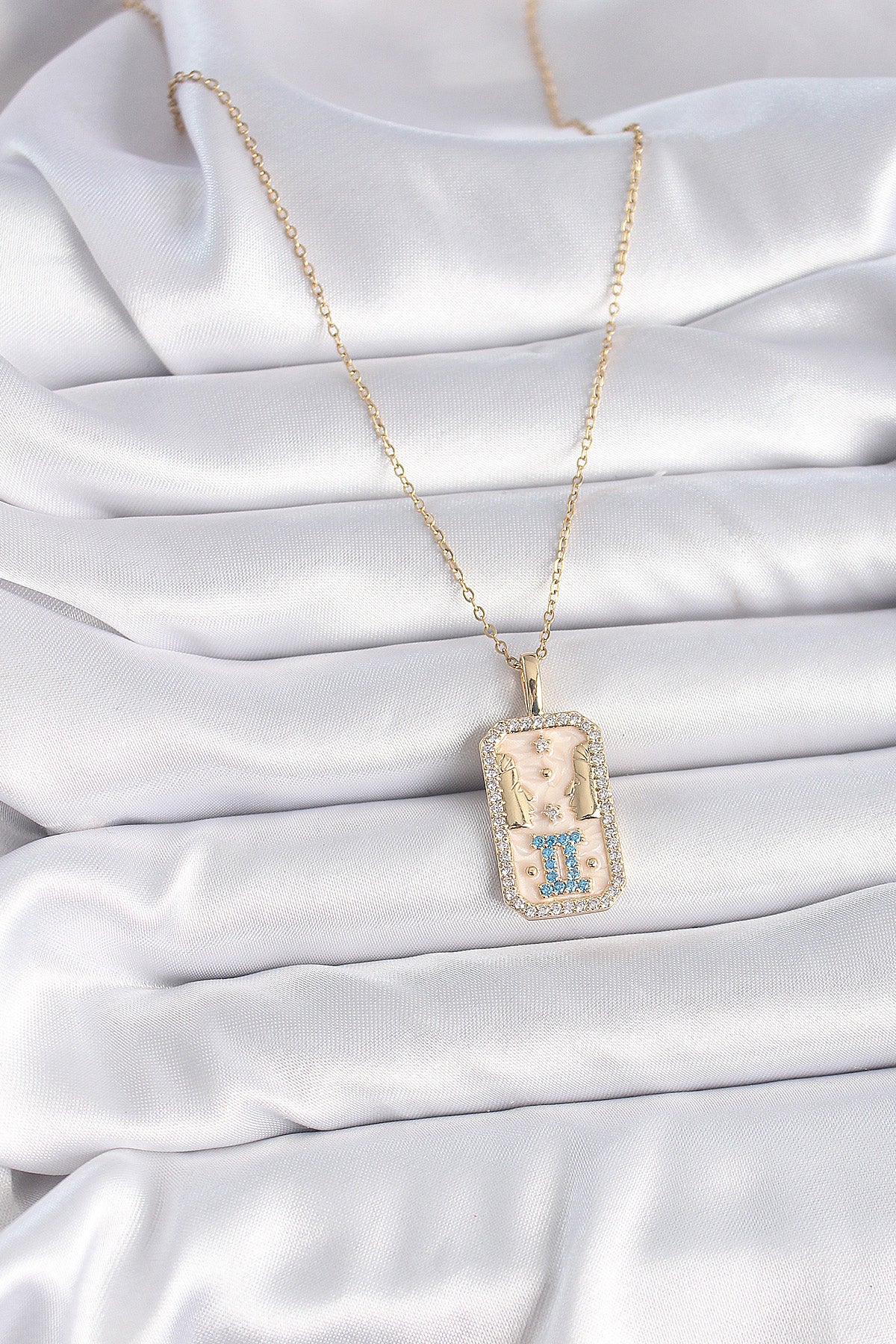 - Ürün Adı: 316L Çelik Gold Renk Zincir İkizler Burcu Zirkon Taşlı Kadın Kolye