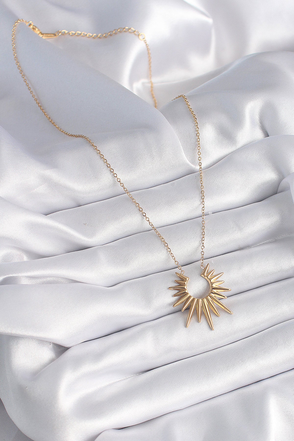 - Ürün Adı: 316L Çelik Gold Renk Güneş Model Vintage Kadın Kolye