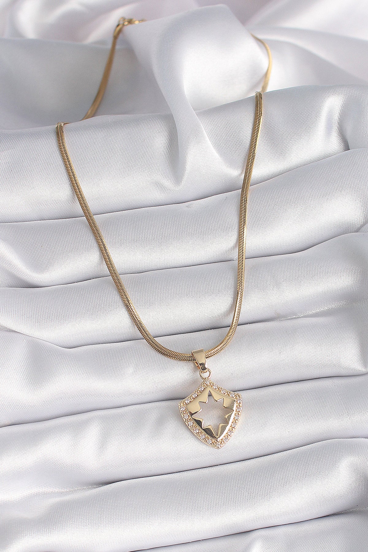 - Ürün Adı: 316L Çelik Gold Renk İtalyan Zincir Zirkon Taşlı Kutup Yıldız İşleme Kadın Kolye