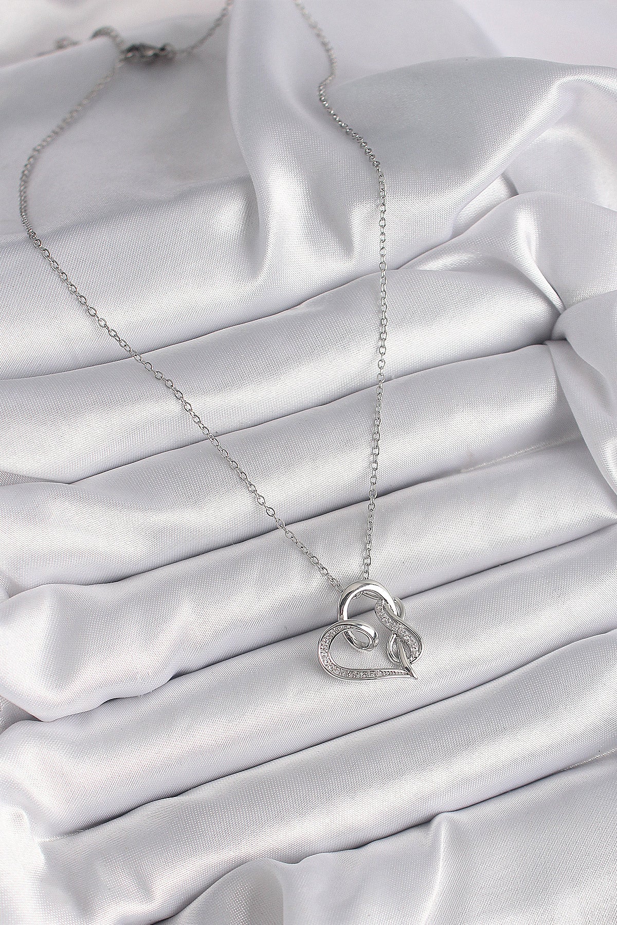 BKO9584 - 316L Çelik Gümüş Renk Zincir Zirkon Taş Detaylı Kalp Model Sonsuzluk Detay Kadın Kolye