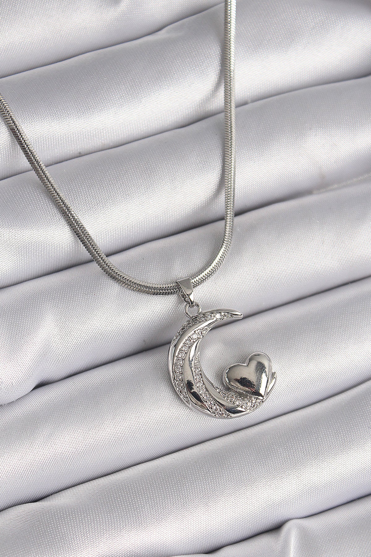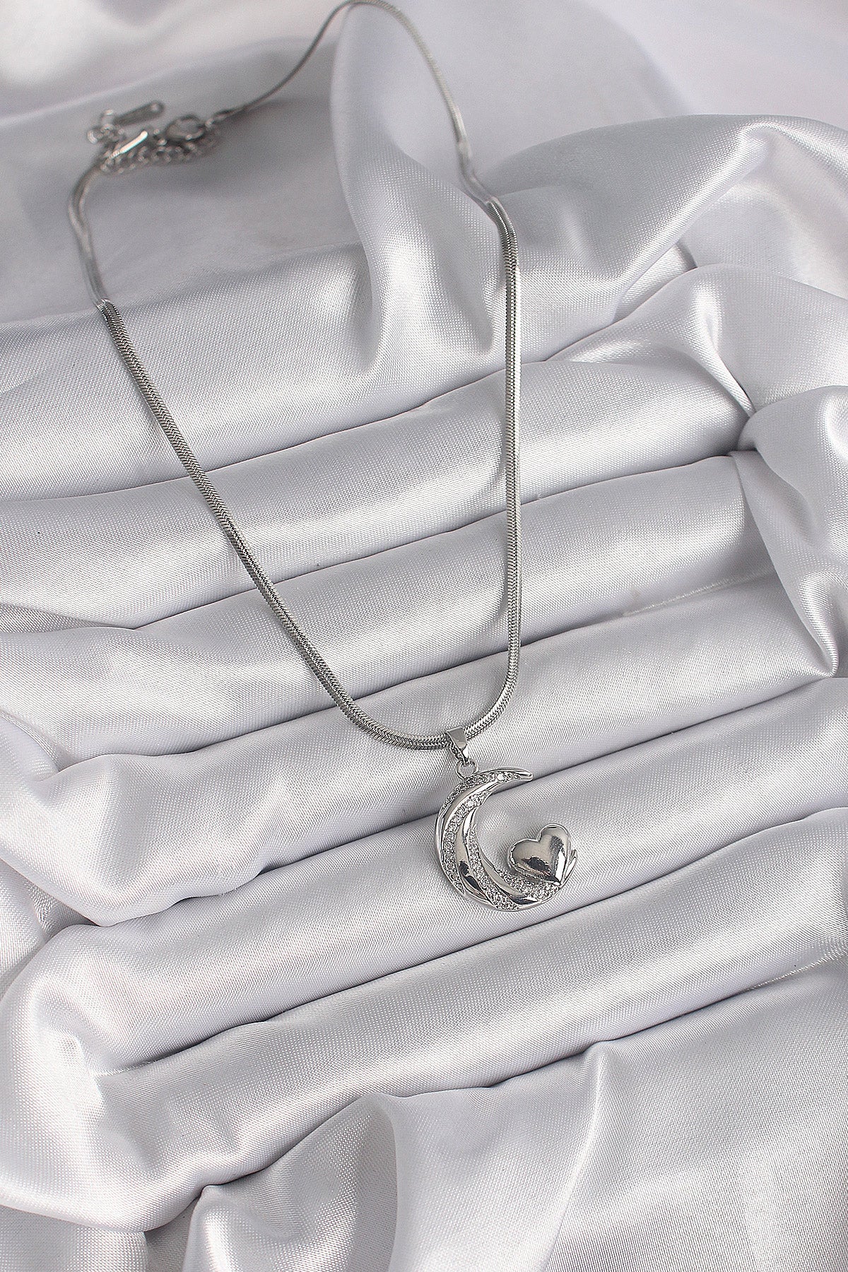 - Ürün Adı: 316L Çelik Gümüş Renk İtalyan Zincir Zirkon Taşlı Halil Figür Kalp Detay Kadın Kolye