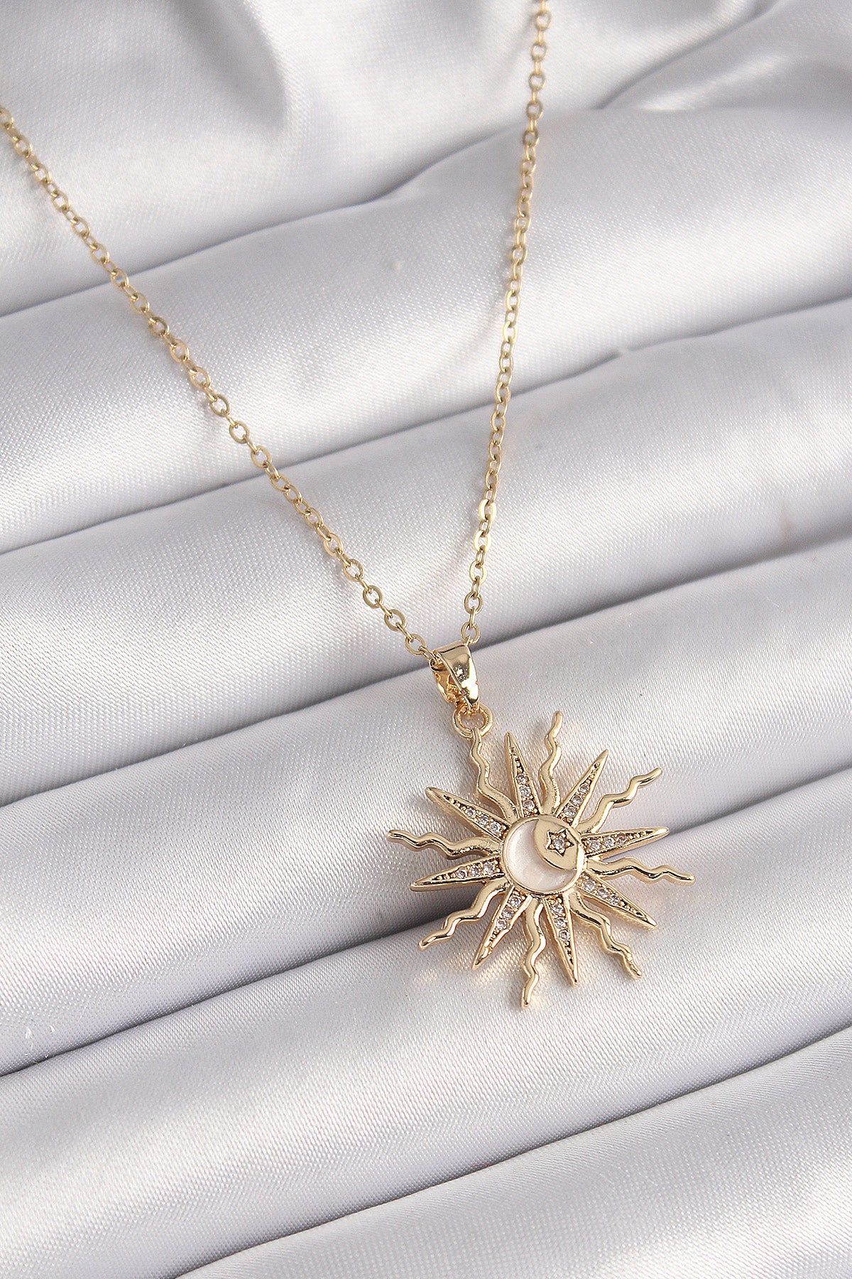Ürün Adı: | 316L Çelik Gold Renk Zincir Renkli Zirkon Taşlı Sedefli Ay İşleme Detay Kadın Kolye |