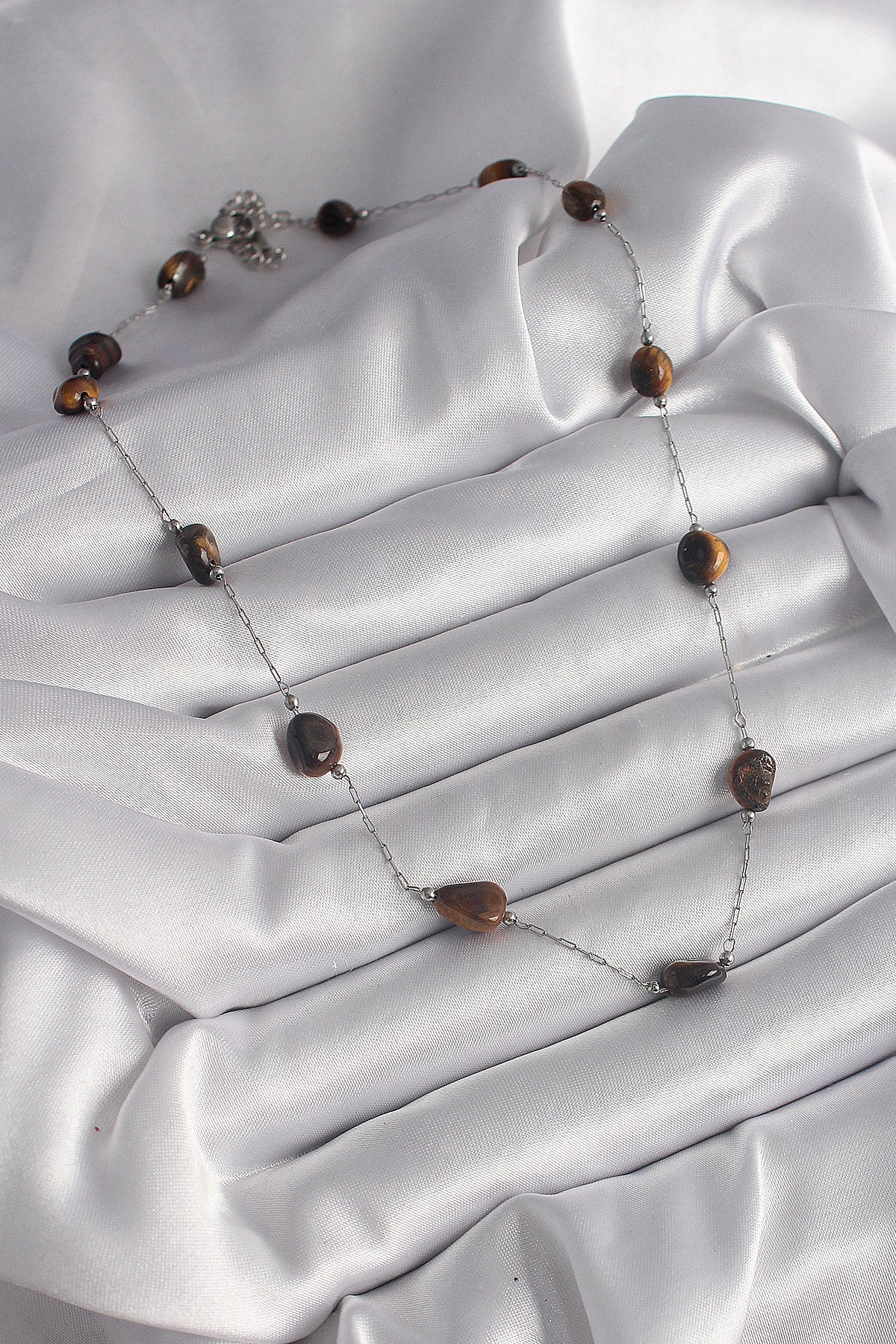 - Ürün Adı: 316L Çelik Gümüş Renk Zincir Kahverengi Doğaltaş Model Kadın Kolye