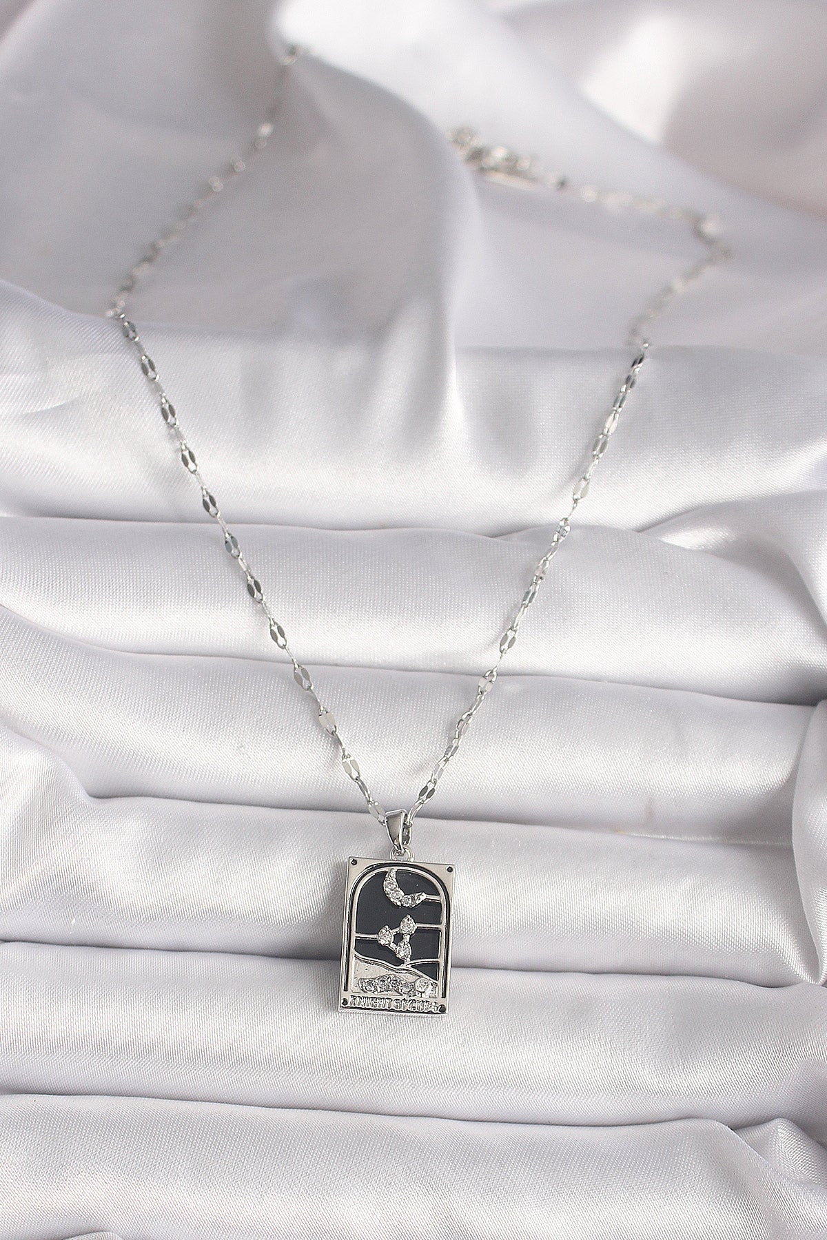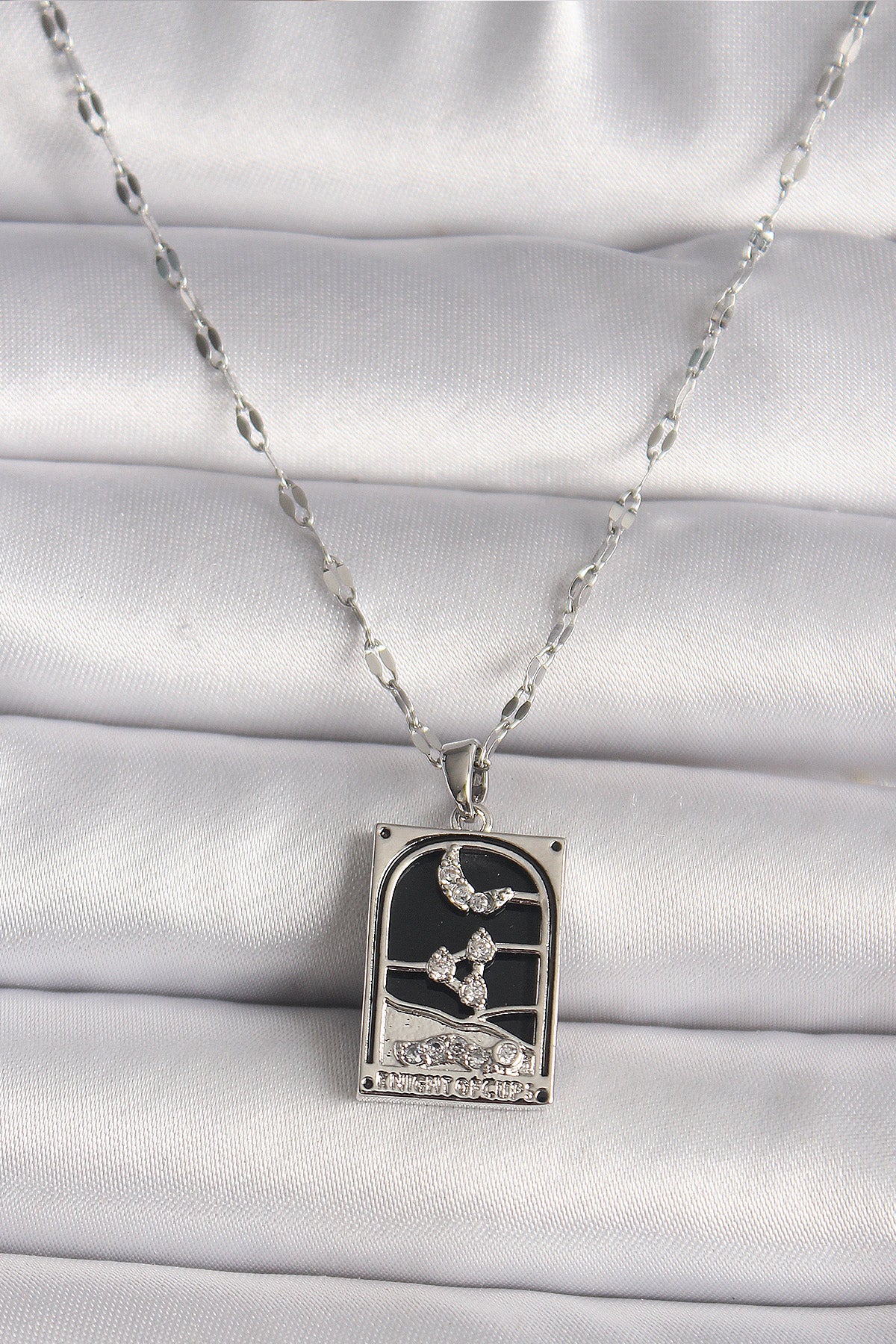 Ürün Adı: | 316L Çelik Gümüş Renk Zirkon Taşlı Ay Figürlü Taror Model Kadın Kolye |