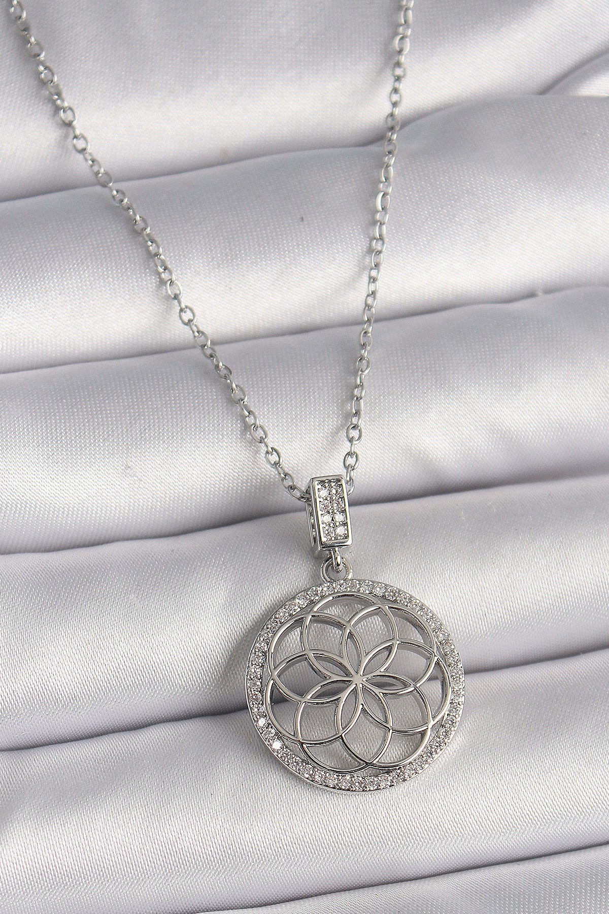 BKO9731 - 316L Çelik Gümüş Renk Zincir Zirkon Taşlı Lotus Model Kadın Kolye