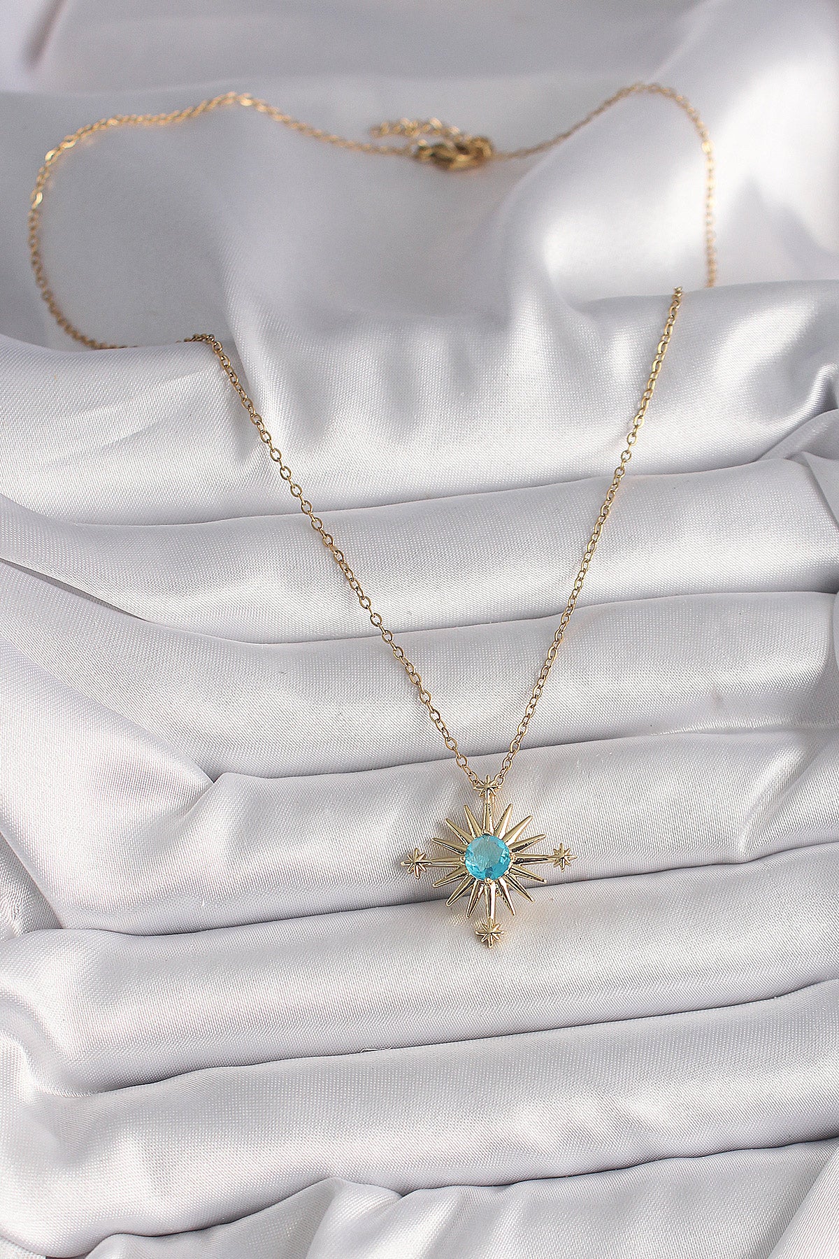 Ürün Adı: | 316L Çelik Gold Renk Zincir Mavi Taş Detaylı Kuzey Yıldız Model Kadın Kolye |