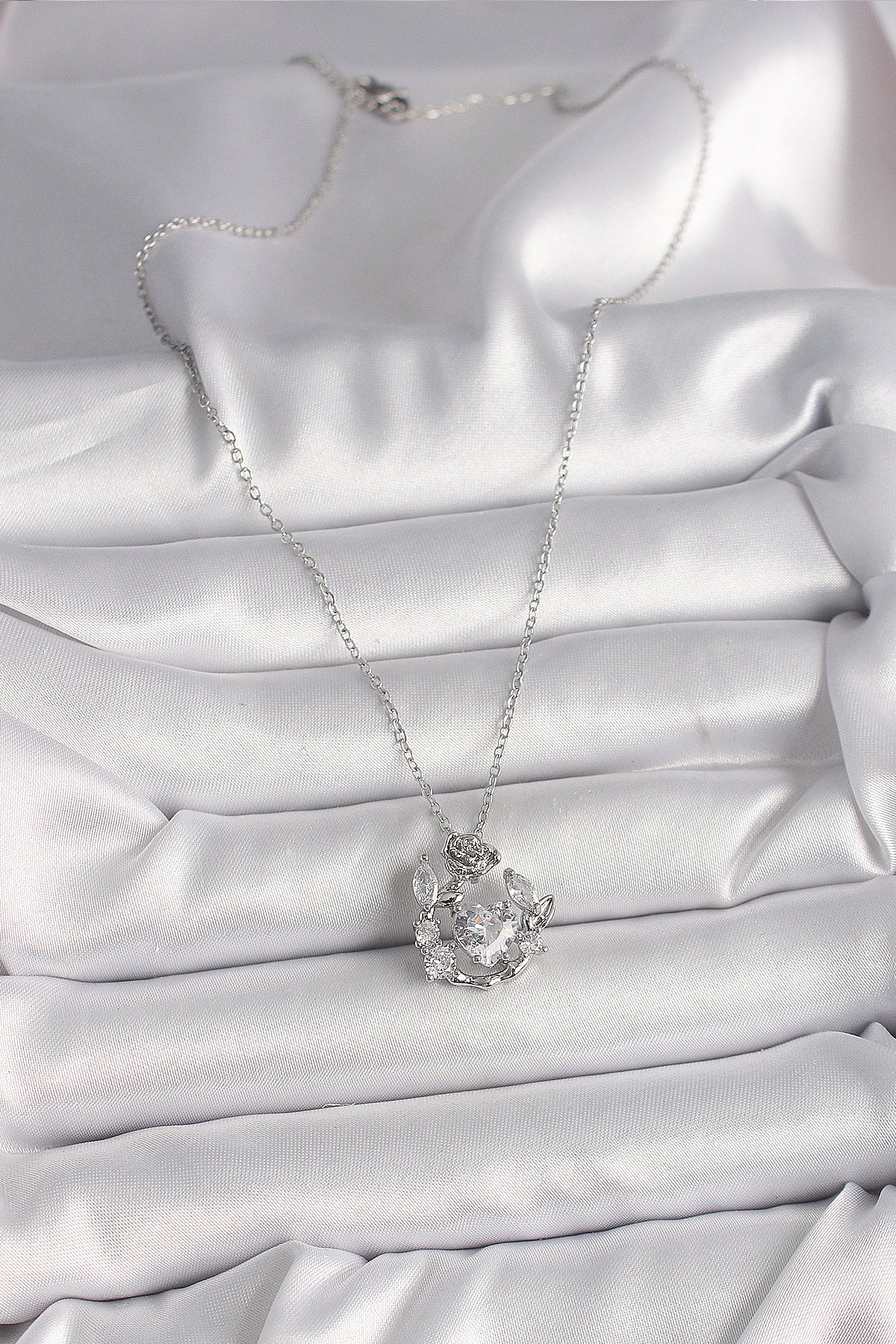 Ürün Adı: | 316L Çelik Gümüş Renk Zincir Zirkon Taşlı Kalp Figür Gül Detay Kadın Kolye |