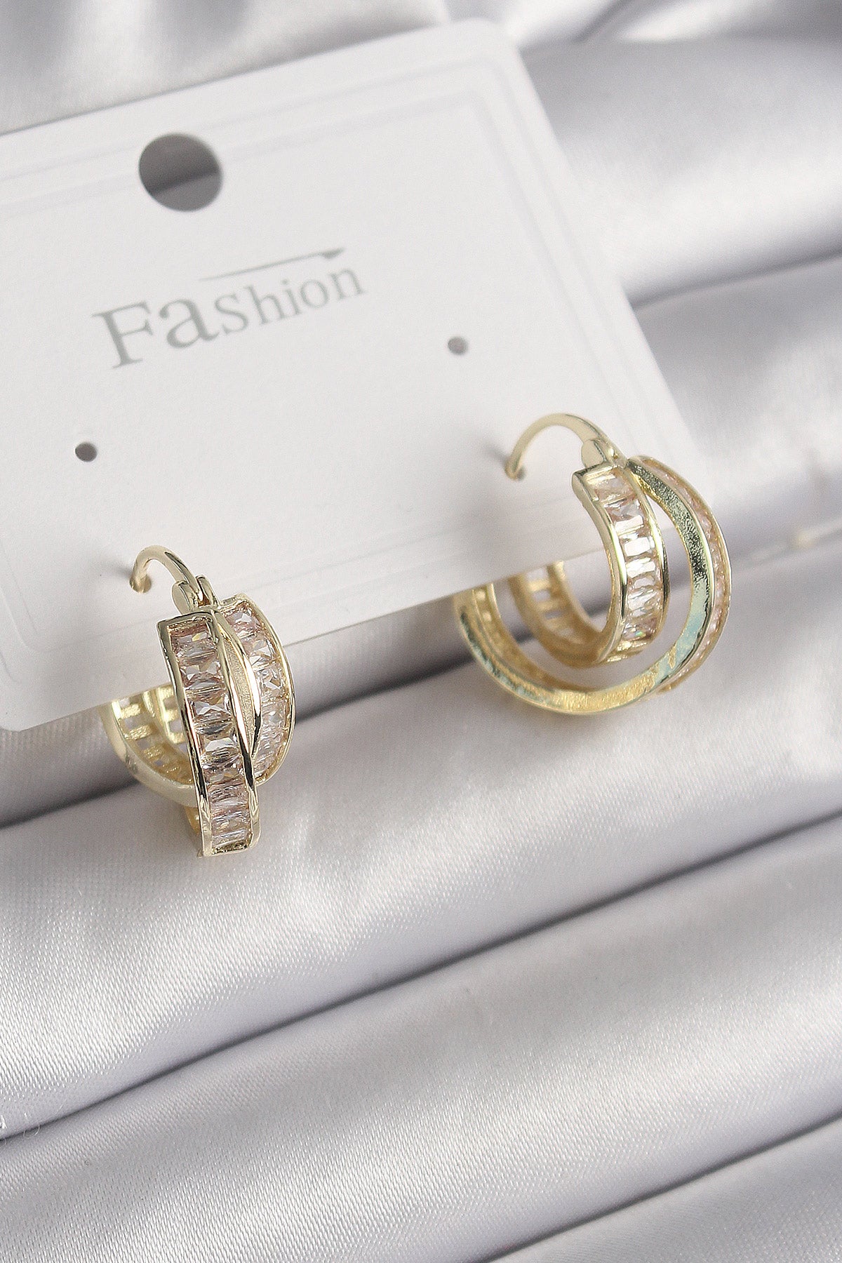 - Ürün Adı: Pirinç Gold Renk Zirkon Taşlı Halka Model Kadın Küpe